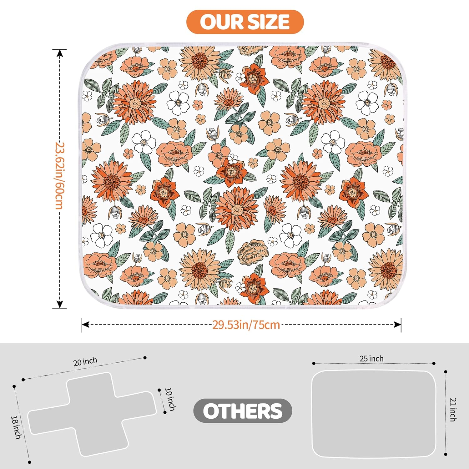Diaper Changing Pads for Baby, Flower Change Mat, 3Layers Waterproof Change Pad Foldable Absorbent Mats for Women, Reusable Incontinence Underpads for Patient 24''x30''