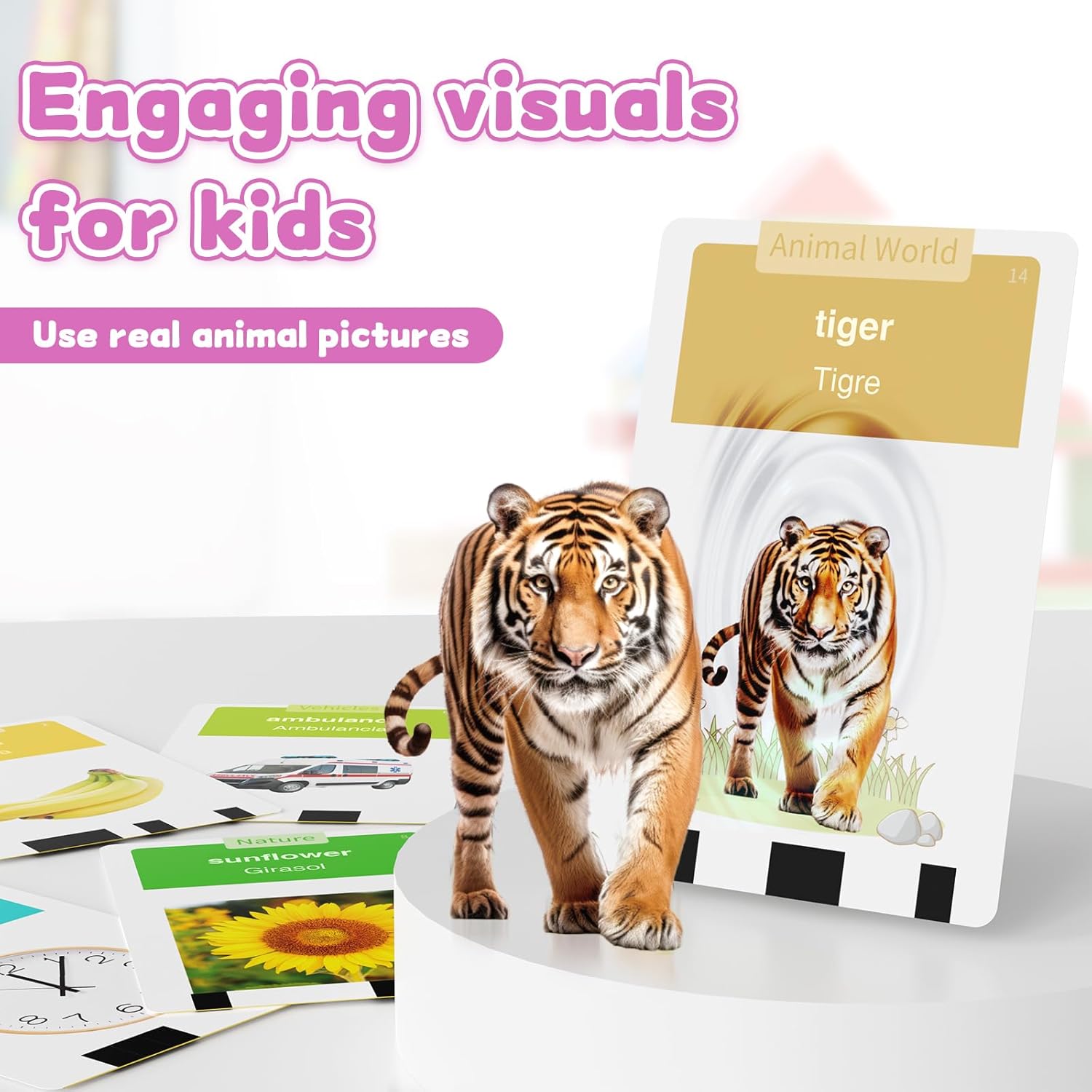 • Elevate your child's learning experience with the Toddler Bilingual Flash Card Machine – an innovative and interactive tool that perfectly combines fun and education! Designed for children ages 3 to 6, these cards use local pronunciations to read 288 English and Spanish vocabulary words, supporting bilingual language development. Each card features clear pronunciation and engaging visuals, making learning a joyful and immersive experience