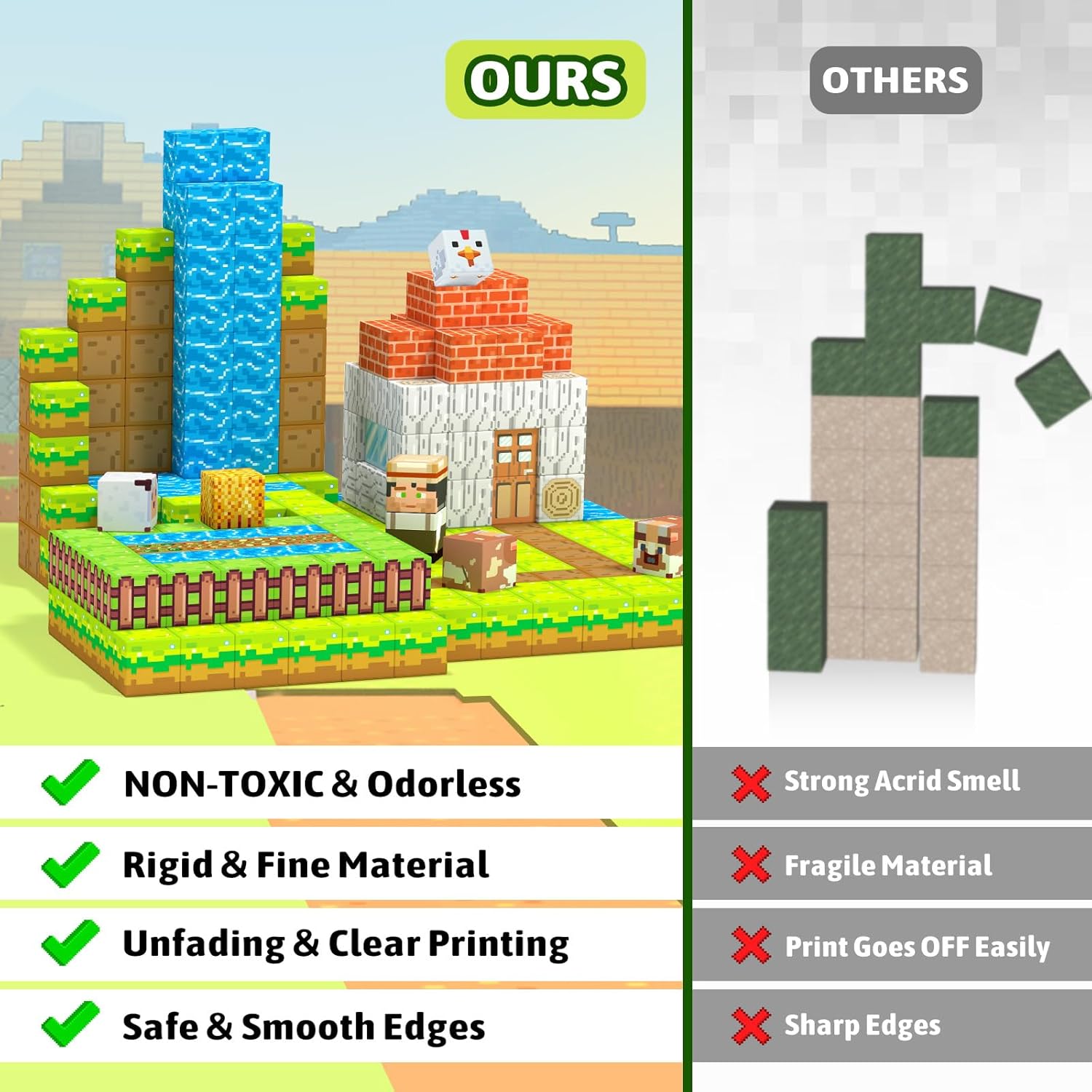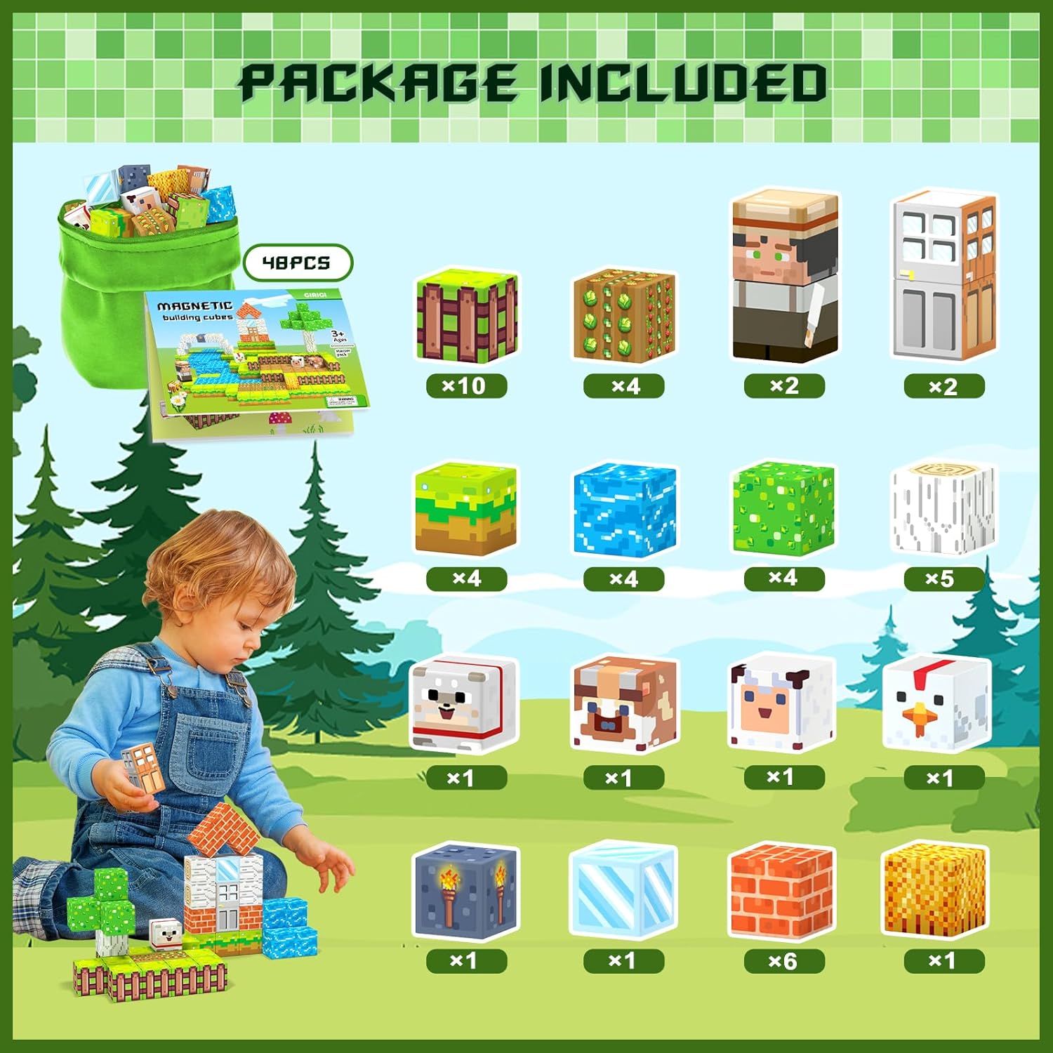 - ● Magnetic Blocks Farm Life Set: Step into a delightful world of rural life with our magnetic building blocks set! Featuring a little farmer, along with cute animals,vibrant crops,torches..Kids can create their own bustling farm with magnetic blocks.Unleash your children's creative thinking as they explore farm life and enjoy hours of imaginative role-play fun!