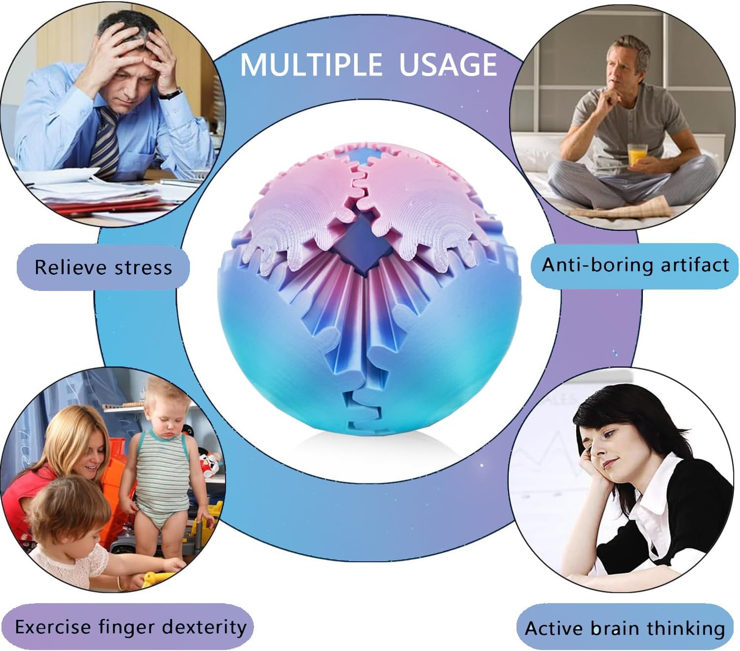 • Stress Relief: Whether you're dealing with work stress, school anxiety, or just need a little distraction, gear fidget toy provides a soothing, tactile experience that helps melt your worries away.