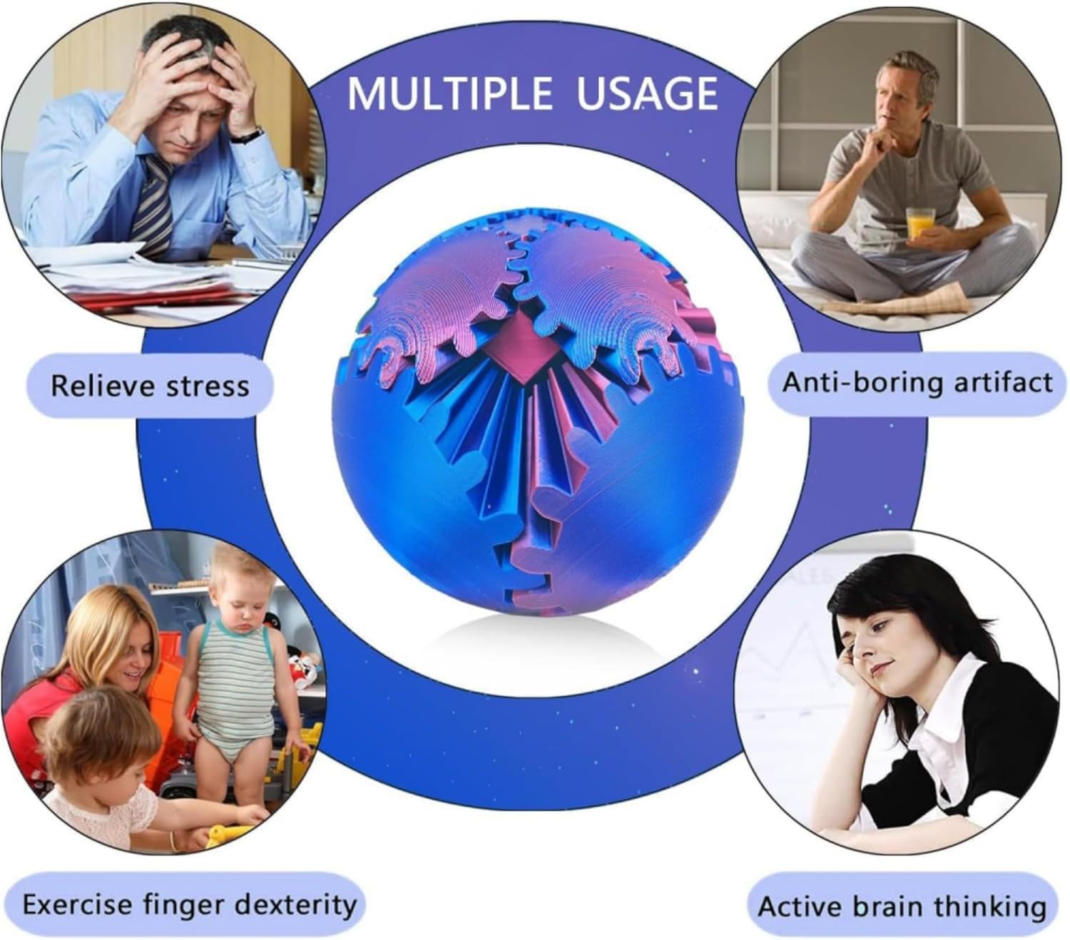 • 3D Printed Gear Ball: Gear Ball Fidget Toy is made of high-quality 3D printed materials with a smooth surface and durable structure, which is designed to provide stress and anxiety relief.