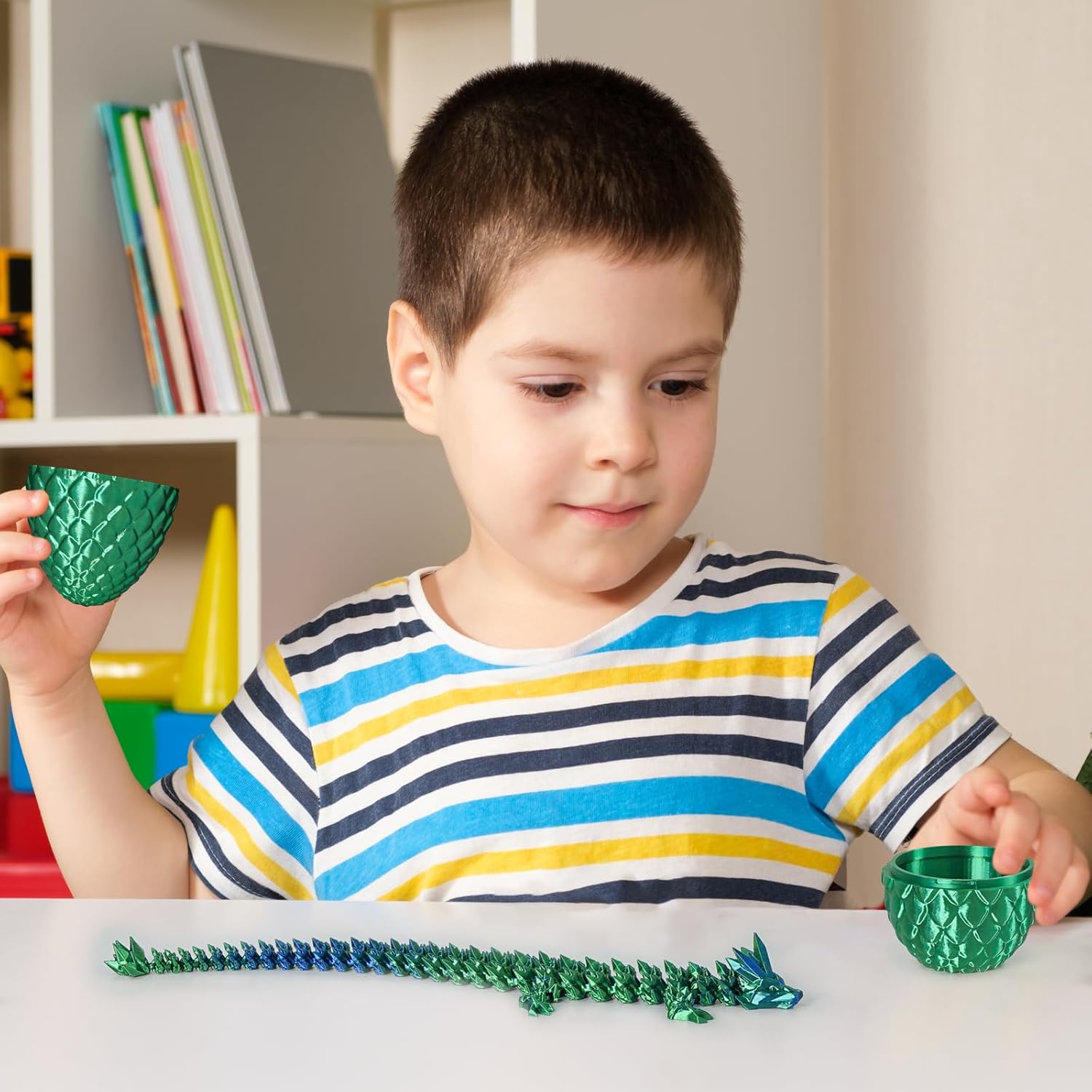 Small Dragon Eggs with Dragon Inside, 3D Printed Surprise Funny Gifts for Kids, Articulated Dragon Fidget Toys for Adults, Executive Desk Toys Office Room Décor (Christmas Green)