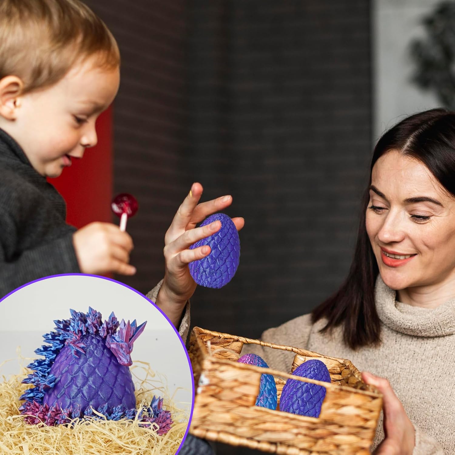 Small Dragon Eggs with Dragon Inside, 3D Printed Surprise Funny Gifts for Kids, Articulated Dragon Fidget Toys for Adults, Executive Desk Toys Office Room Décor (Shiny Purple)