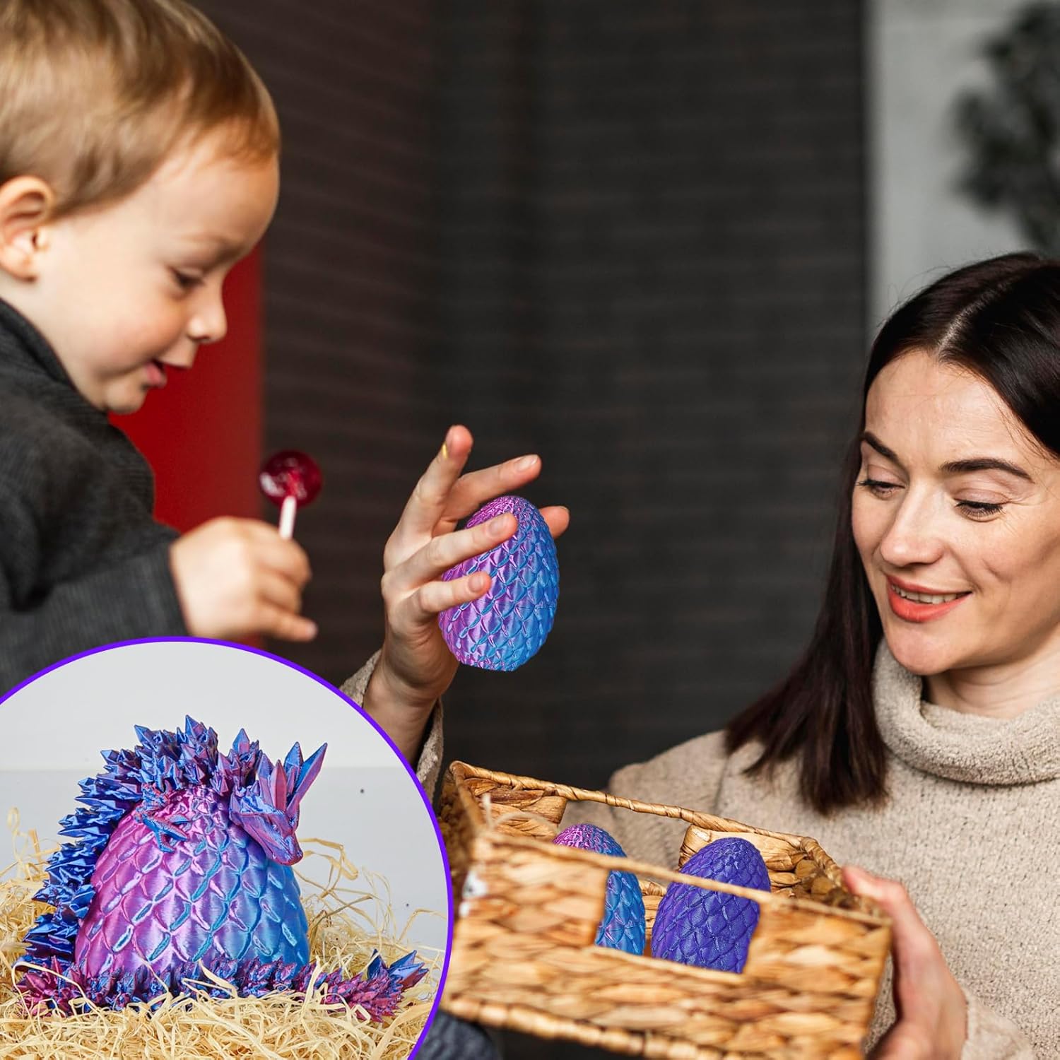 Small Dragon Eggs with Dragon Inside, 3D Printed Surprise Funny Gifts for Kids, Articulated Dragon Fidget Toys for Adults, Executive Desk Toys Office Room Décor (Gradient Light Purple-Red)