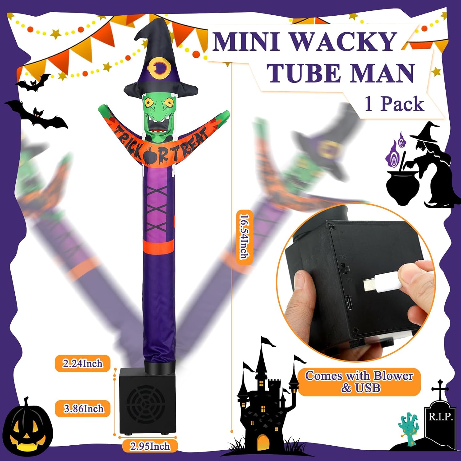 Halloween Wacky Waving Inflatable Tube Guy Gift Witch Mini Inflatable Tube Man with Blower Desktop Ghost Air Tubes Toy Inflatable Man Dancing Small Desk Decorations for Halloween Party Decor