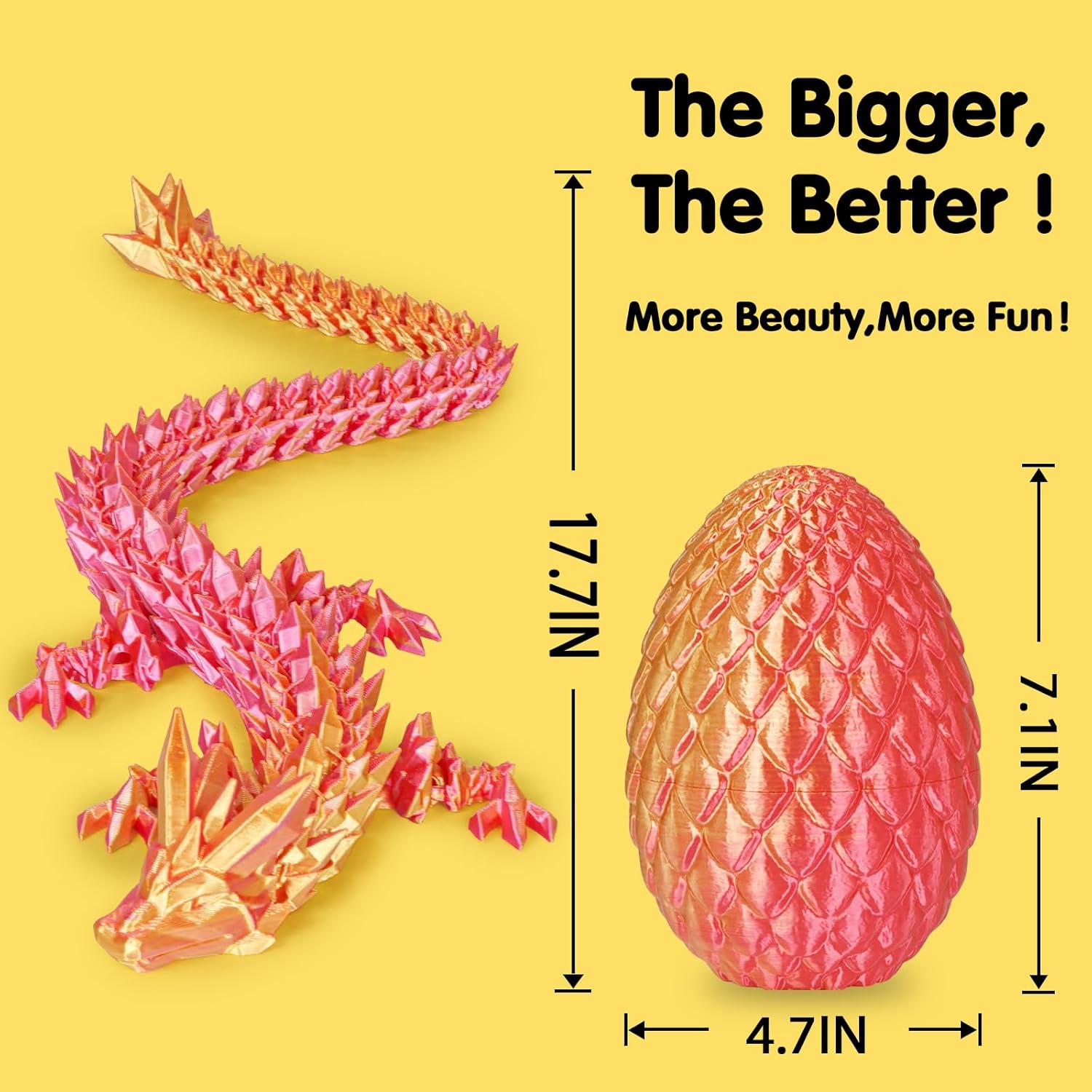 • Large Size: The dragon egg, about the size of an egg, stands just 7.1 inches tall, while the 3D printed dragon measures 17.7 inches in length. They're the perfect size to add a touch of magic to any room! ✨"
