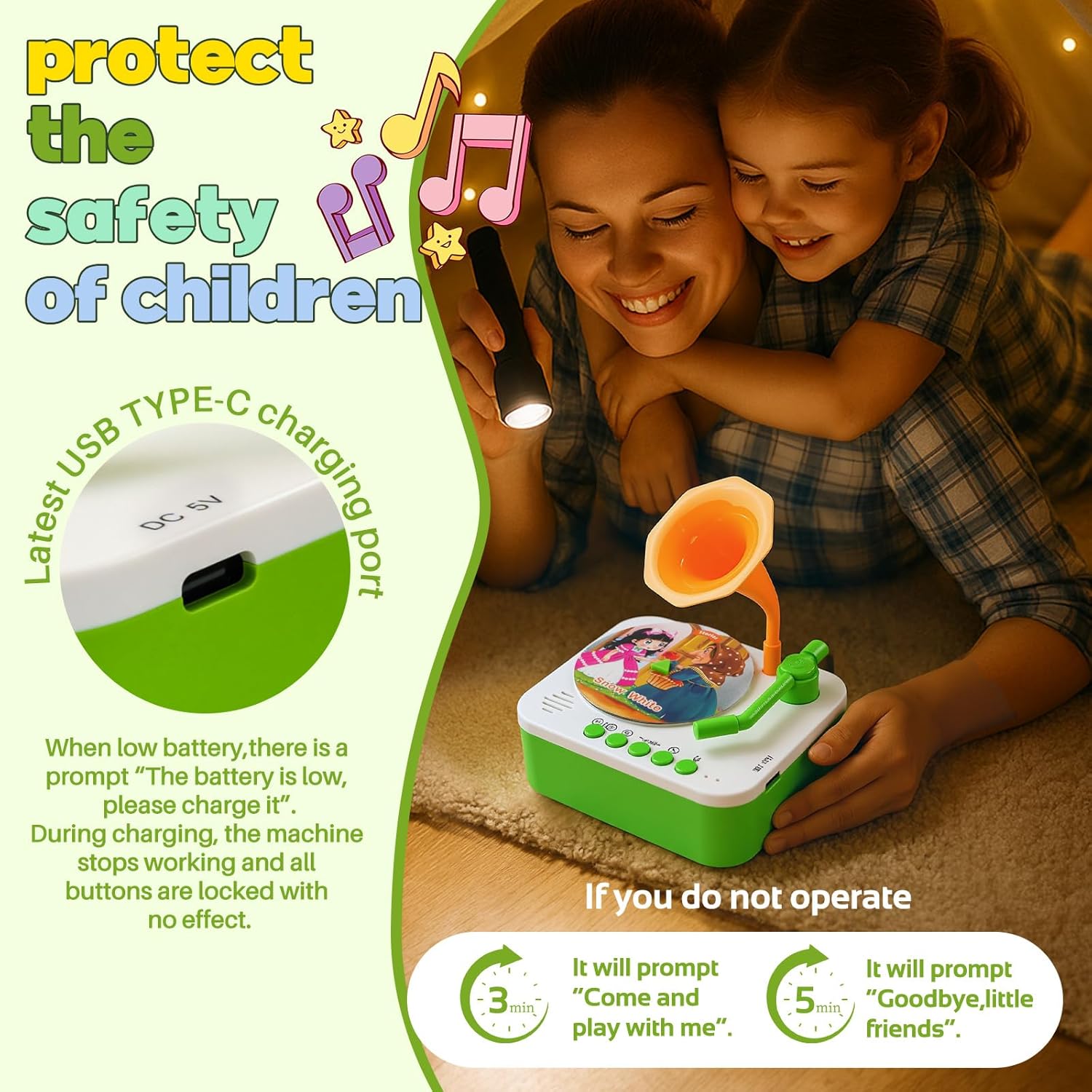 • Engage your child's imagination with this children's phonograph featuring 96 sound cards of nursery rhymes and fairy tales, perfect for toys for 4 year old boys and girls. A great alternative to Little Tikes Story Dream Machine Books or Baby Einstein Toys.