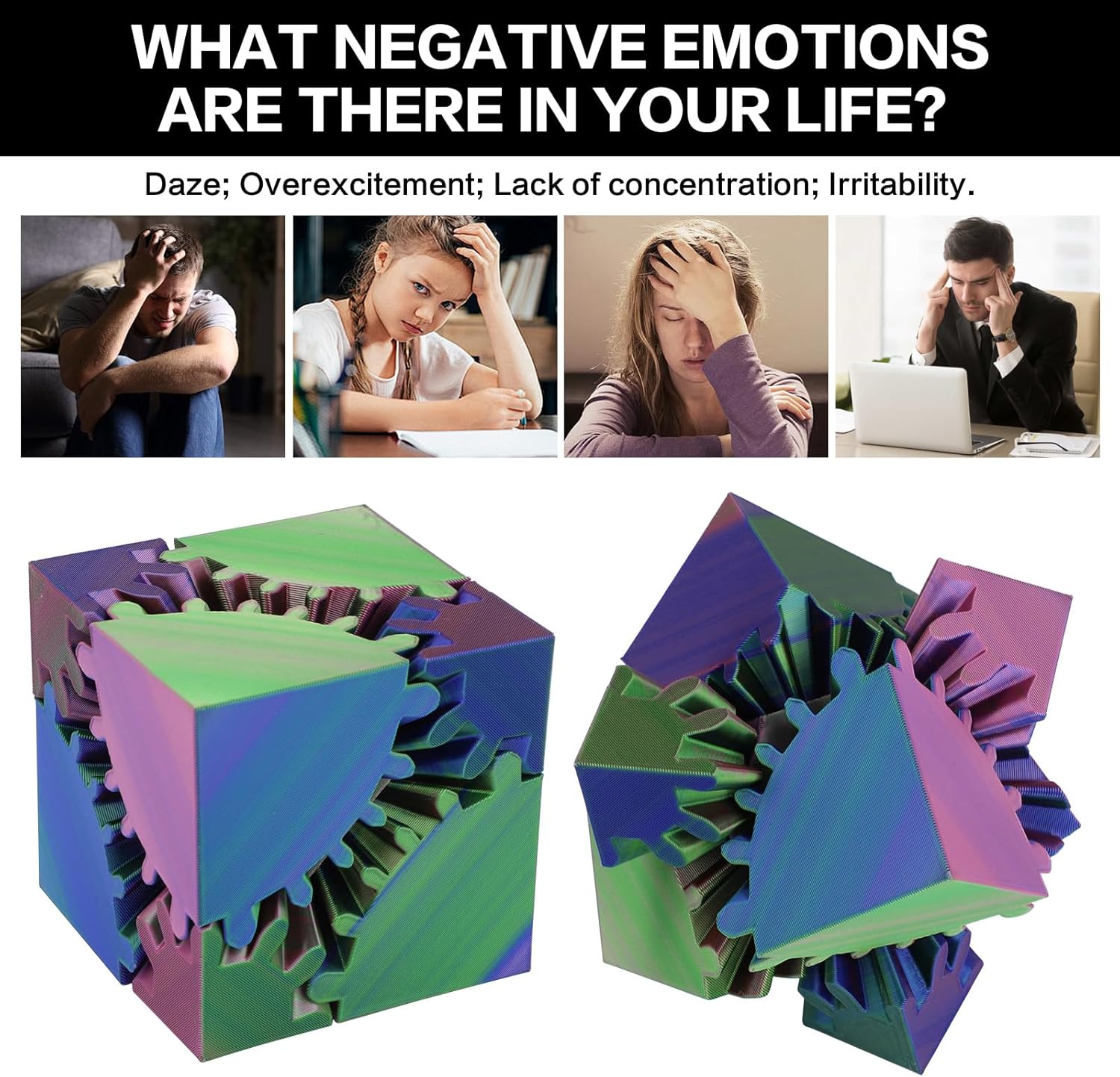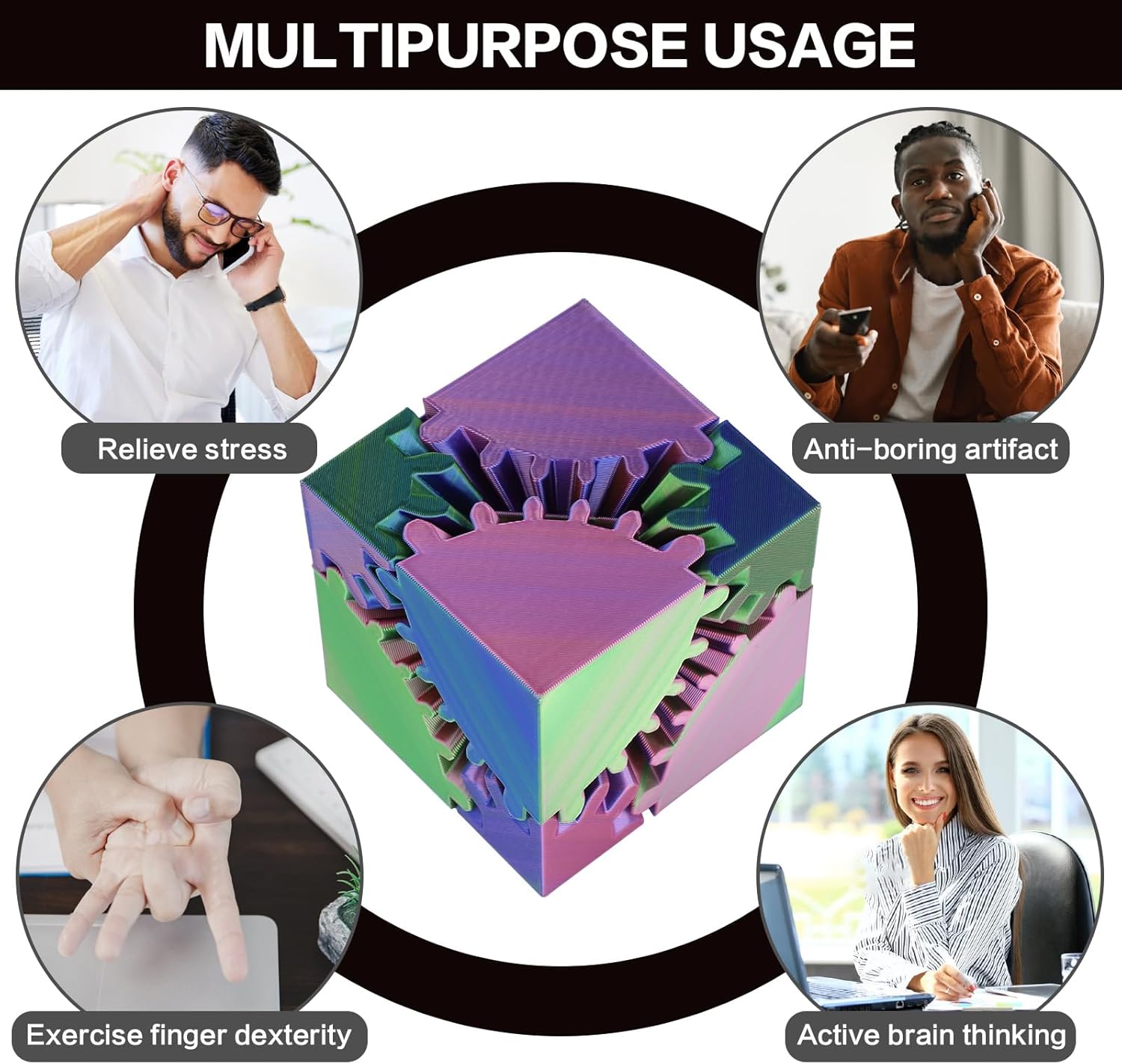 3D Printed Fidget Gear Cube - 3D Printed Cube Fidget Toy Gear, Fidget Toy, Cube Stress Anxiety Relief Toys, Relaxing Hand-Held Adults Desk Toy, for Families and Offices to Relieve Stress