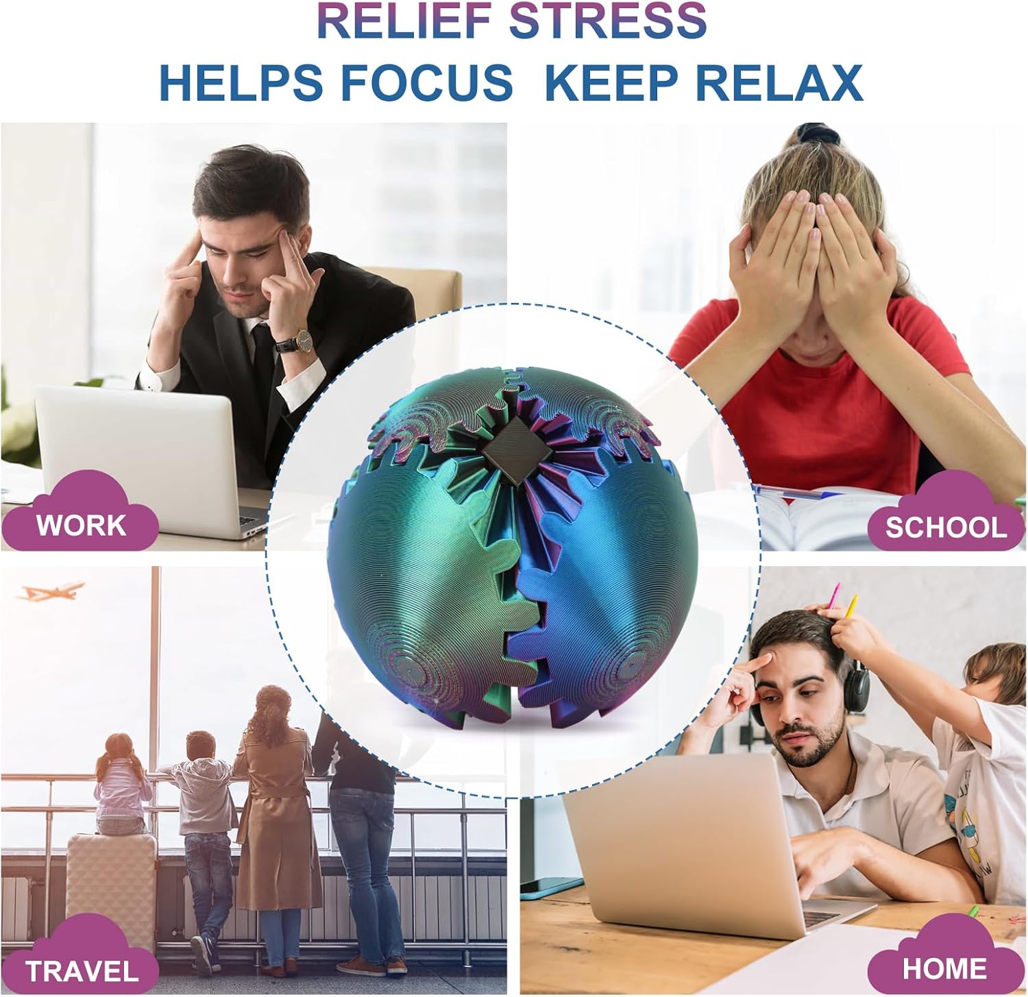 • 【3d Printed Gear Ball】The gear ball features a complex array of interlocking gears that turn, twist, and articulate with a simple flick of your fingers. It's like holding a mini engineering marvel in your hand!
