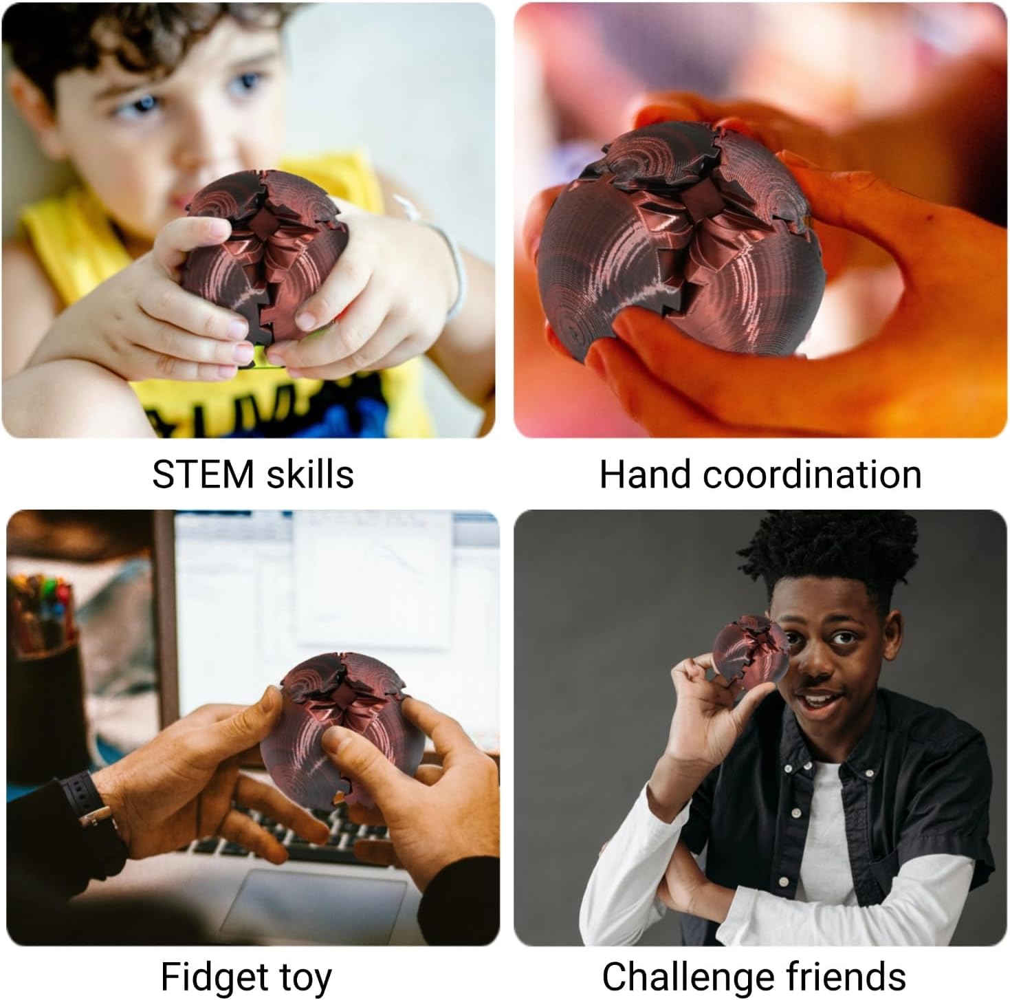 • 【Versatile for All Ages】The 3D printed gear ball spin ball cube fidget toy caters to people of all age groups, including children and adults. The Gear sphere toy serves as a stress relief tool and an entertaining toy, offering benefits to users across the board.