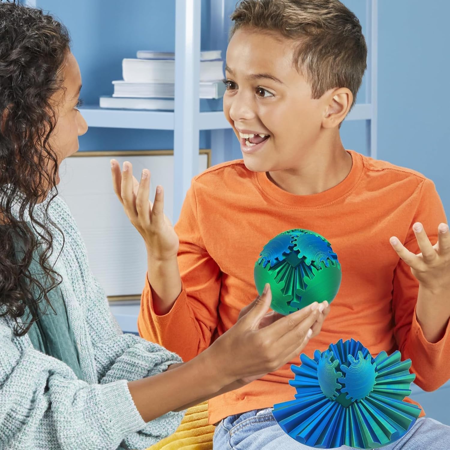 • Gear Ball: The 3d printed gear ball features a complex array of interlocking gears that turn, twist, and articulate with a simple flick of your fingers. It’s like holding a mini engineering marvel in your hand!