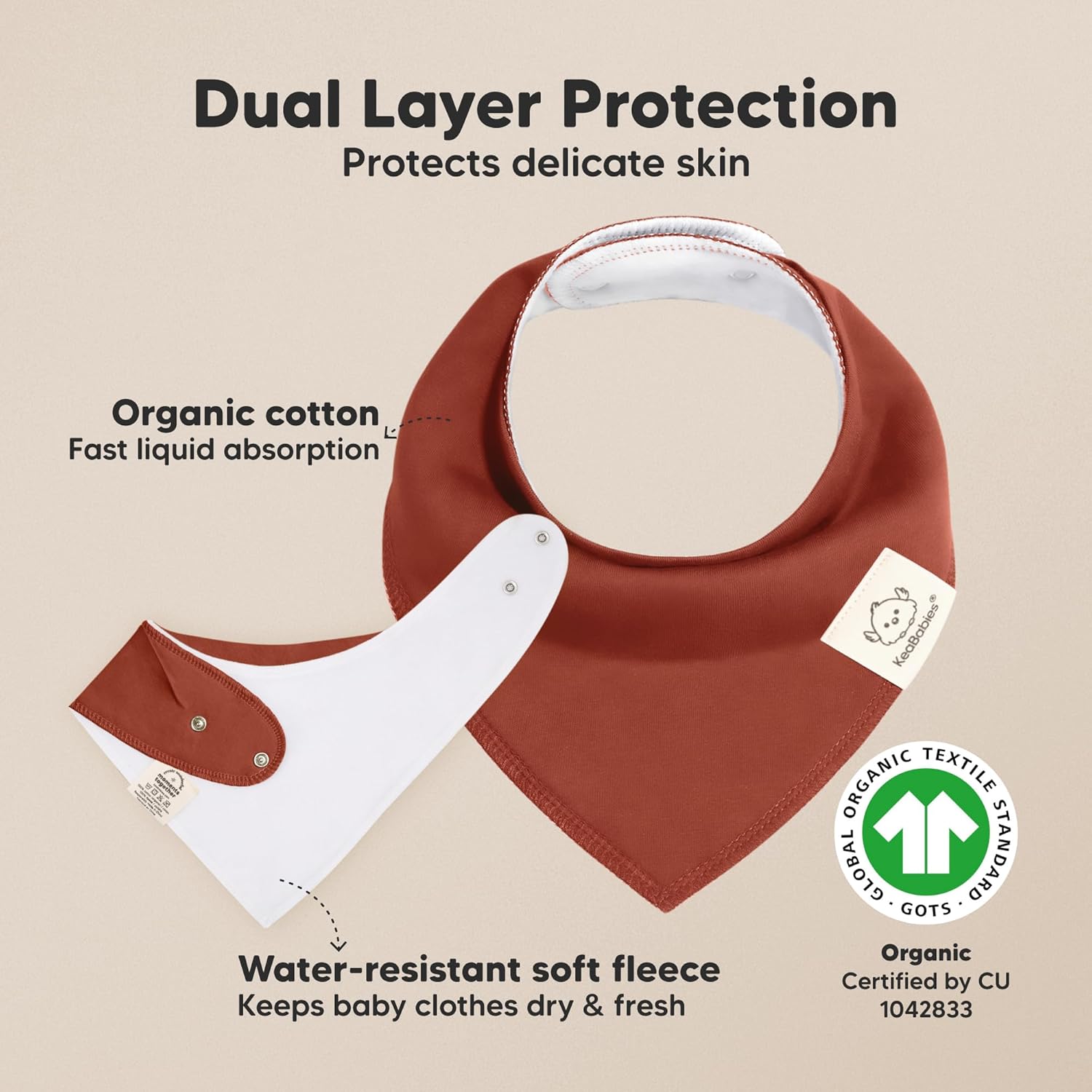 • 8-Pack Baby Bandana Bibs - KeaBabies Organic Drool Bibs come in gender-neutral shades to easily match your baby’s daily outfit. The soft and breathable fabric of these absorbent baby bibs ensure your little one stays cool while drooling and teething.
