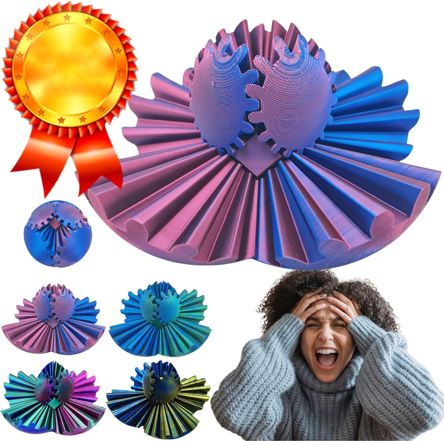 • 3D Printed Gear Ball: The 3d printed gear ball features a complex array of interlocking gears that turn, twist, and articulate with a simple flick of your fingers. It’s like holding a mini engineering marvel in your hand!