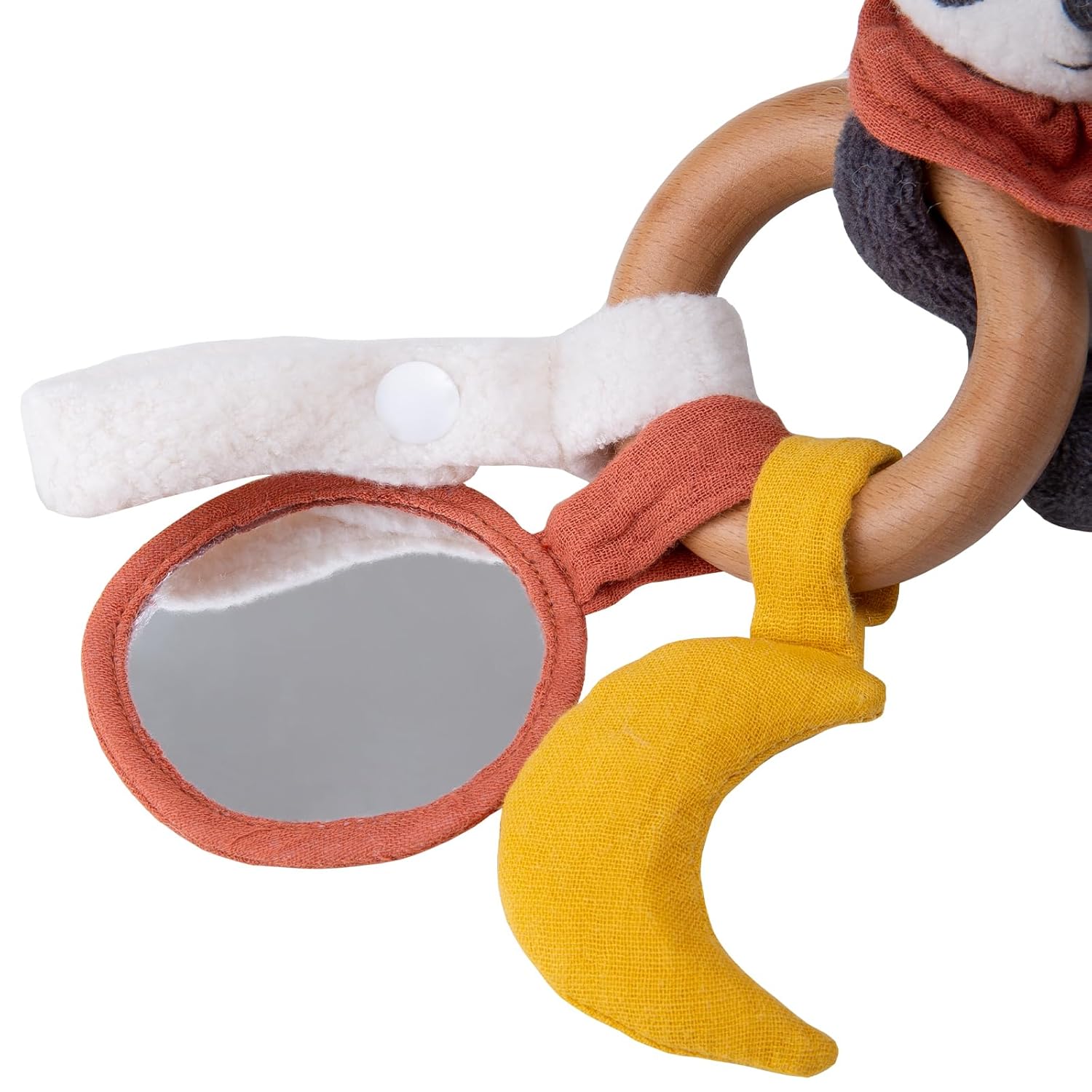• Sensory Development: The plush animal panda that makes a sound when shaken comes with a variety of items: detachable organic FSC wooden ring, cloth ring with button, safe and soft mirror, lovely curved moon, effectively stimulating baby's sense of touch, hearing and other sensory systems during playtime.