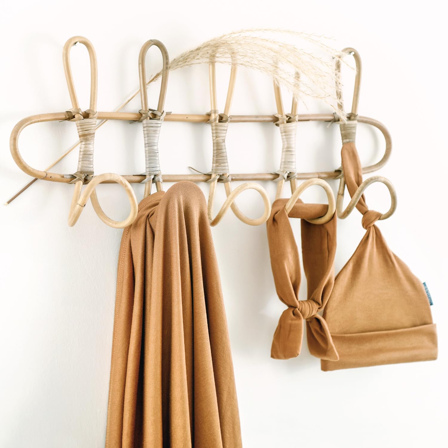 GRSSDER Newborn Swaddle Blanket, Ultra Soft Jersey Receiving Blanket with Matching Headband and Beanie Set, 47×47" Extra Large Nursery Swaddle Wrap for Girls and Boys