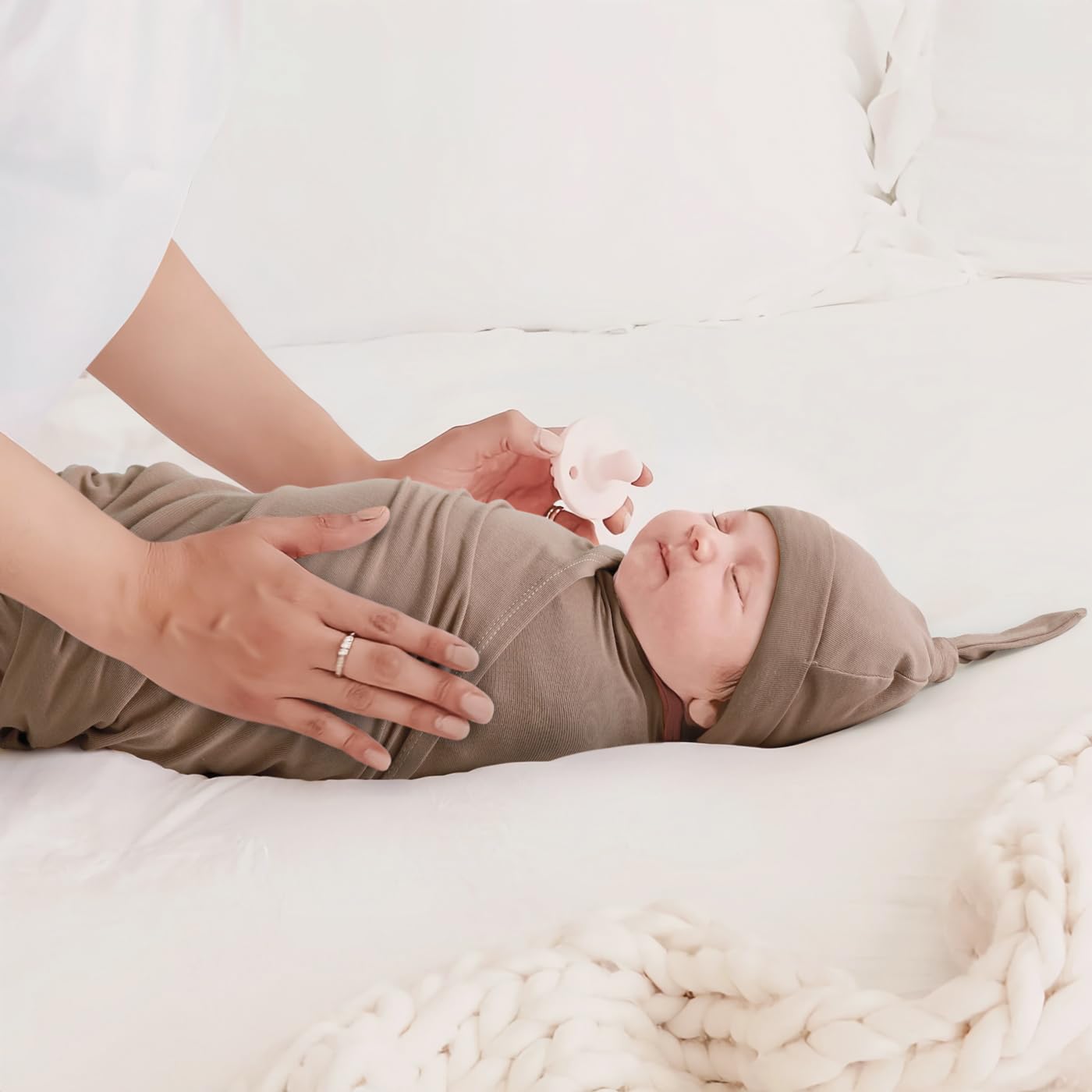 • Adorable and Multi-purpose: Featuring cute, gender-neutral designs, GRSSDER swaddling blankets come with multiple gentle solid colors that bring a delightful experience for your little one. This baby receiving blanket set includes 1pc blanket, 1pc beanie, 1pc baby girl bow, and it can be used as swaddle blanket, nursing cover, baby car seat cover and stroller cover.