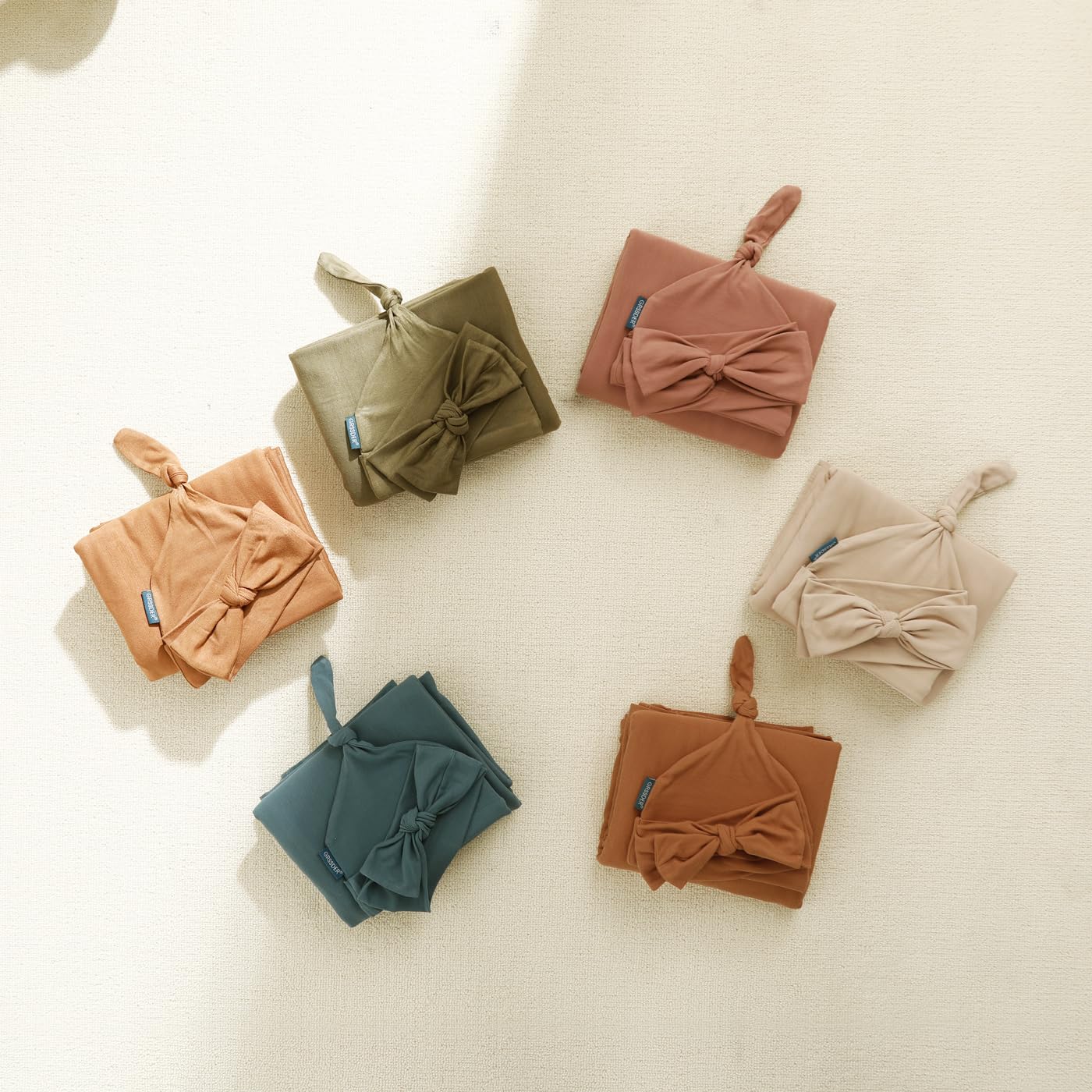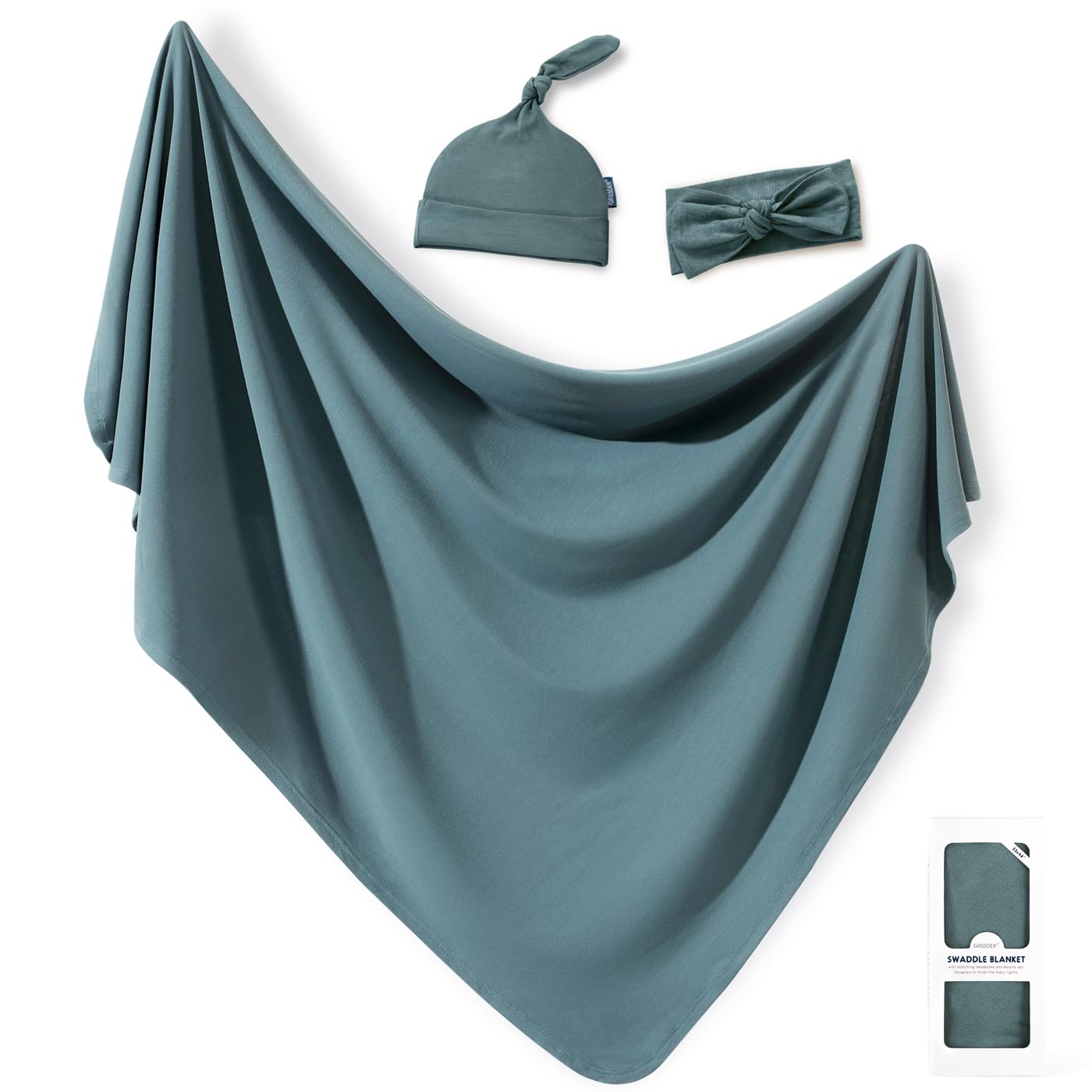 GRSSDER Newborn Swaddle Blanket, Ultra Soft Jersey Receiving Blanket with Matching Headband and Beanie Set 33×44", Stretchy Baby Neutral Swaddle Wrap for Girls and Boys
