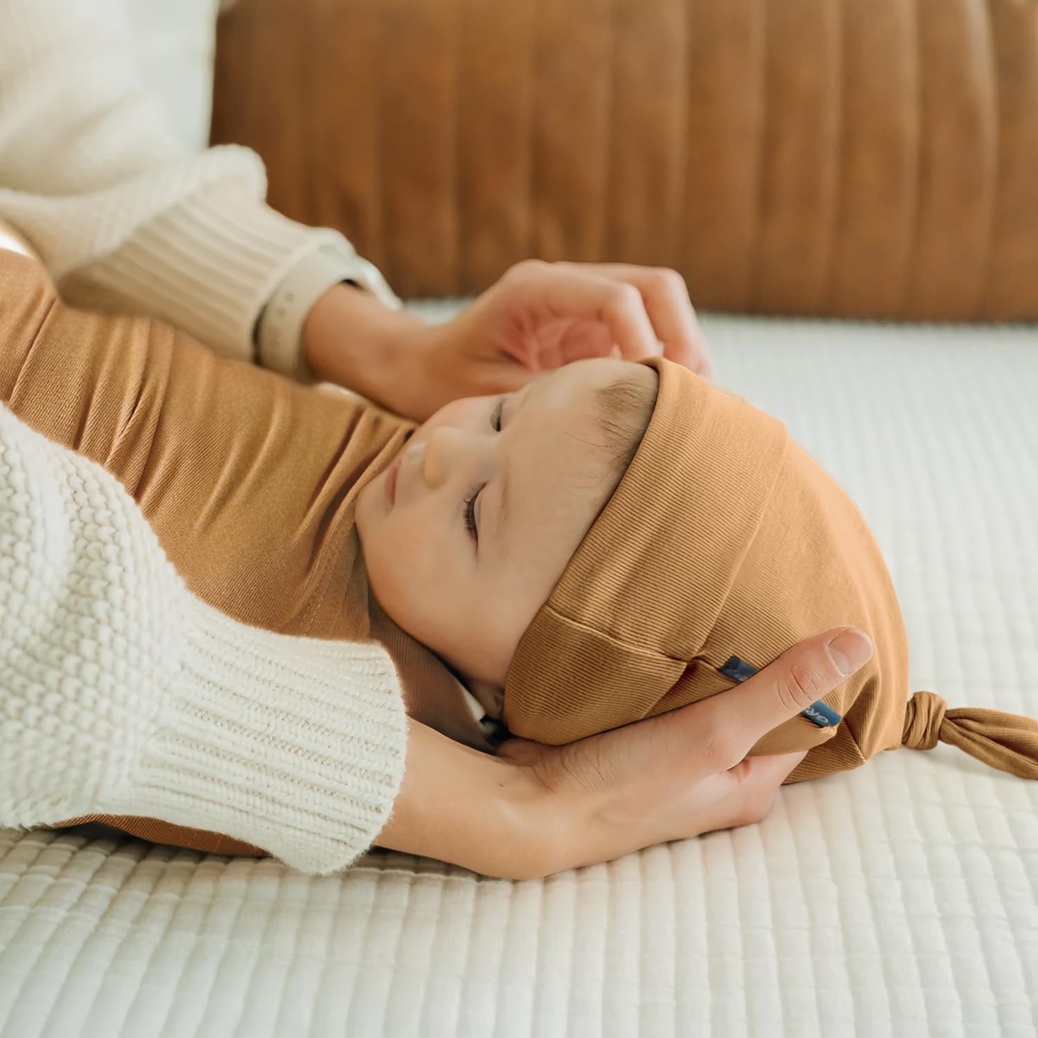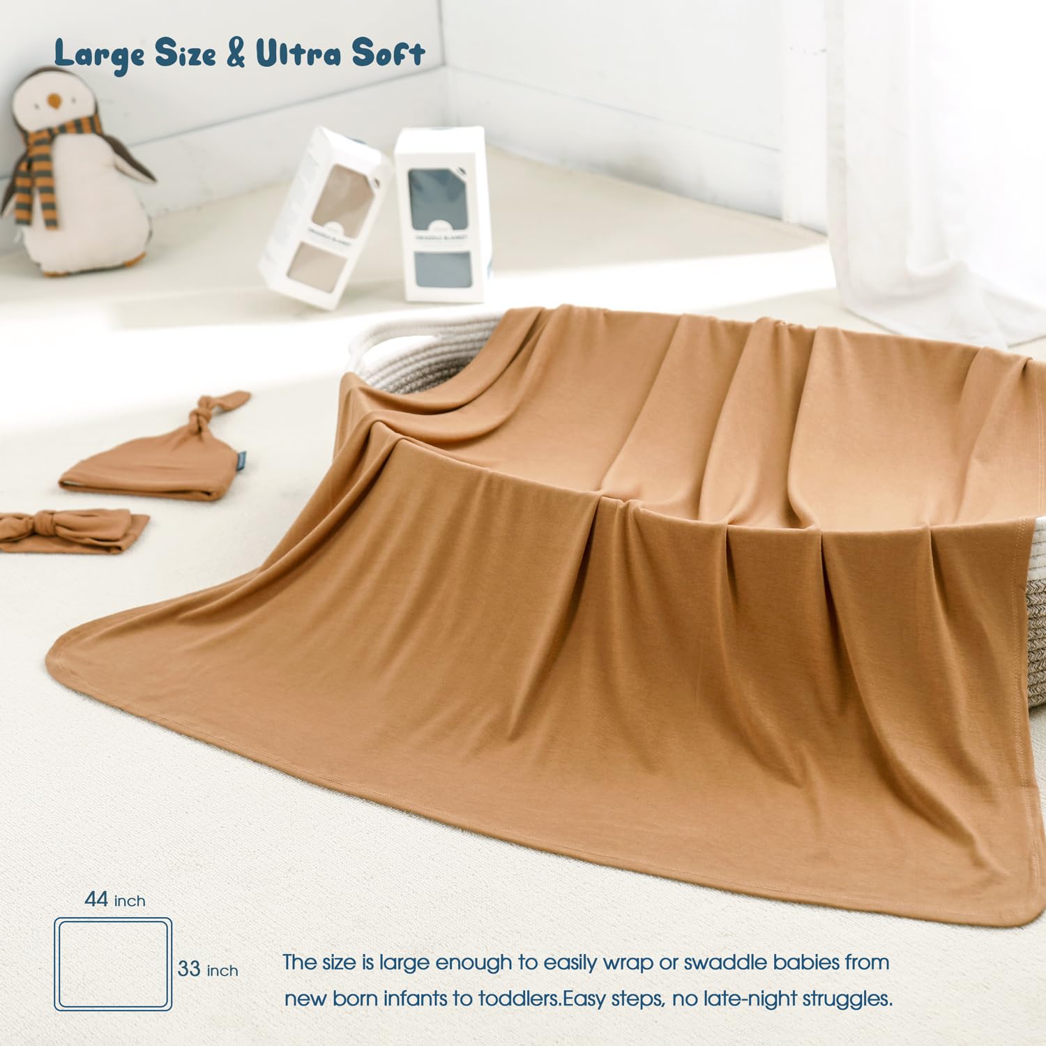 GRSSDER Newborn Swaddle Blanket, Ultra Soft Jersey Receiving Blanket with Matching Headband and Beanie Set 33×44", Stretchy Baby Neutral Swaddle Wrap for Girls and Boys
