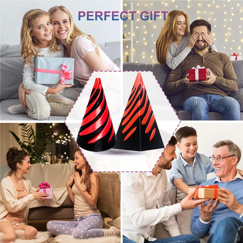 Spiral Cone Fidget Toy,Impossible Cone Pyramid Passthrough Sculpture Bulk Fidget Toys for 3D Printed,Anxiety Stress Relief Desk Deco Souvenir Mini Gift Toy for Home Office (#A-Laser Black Red)