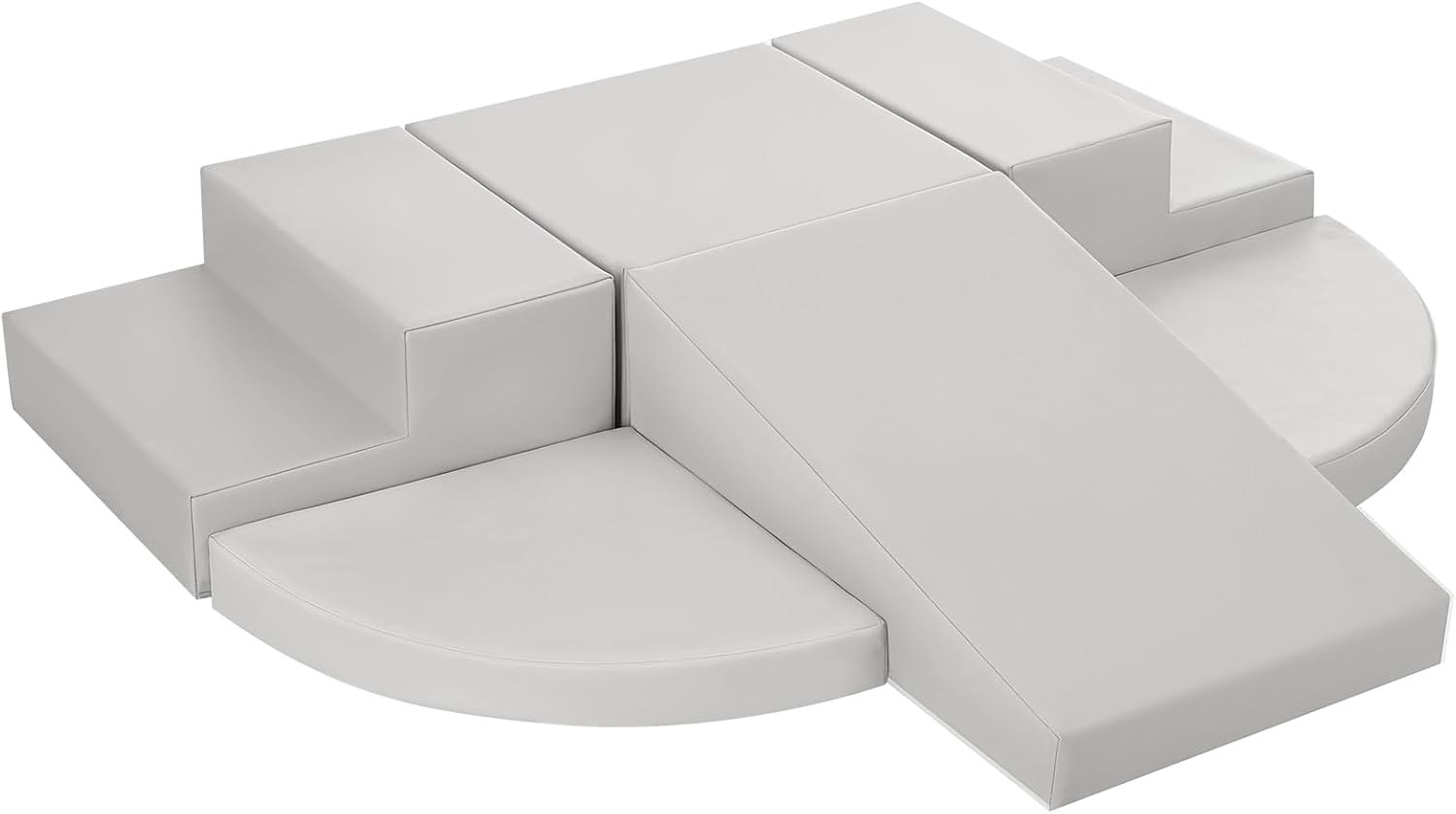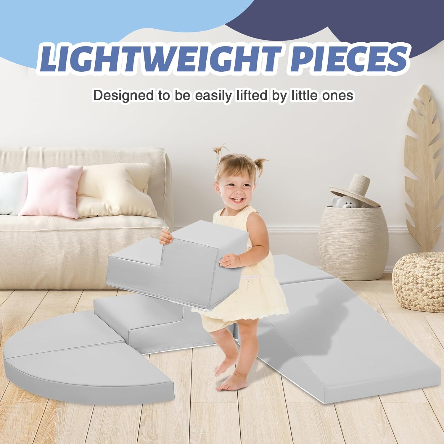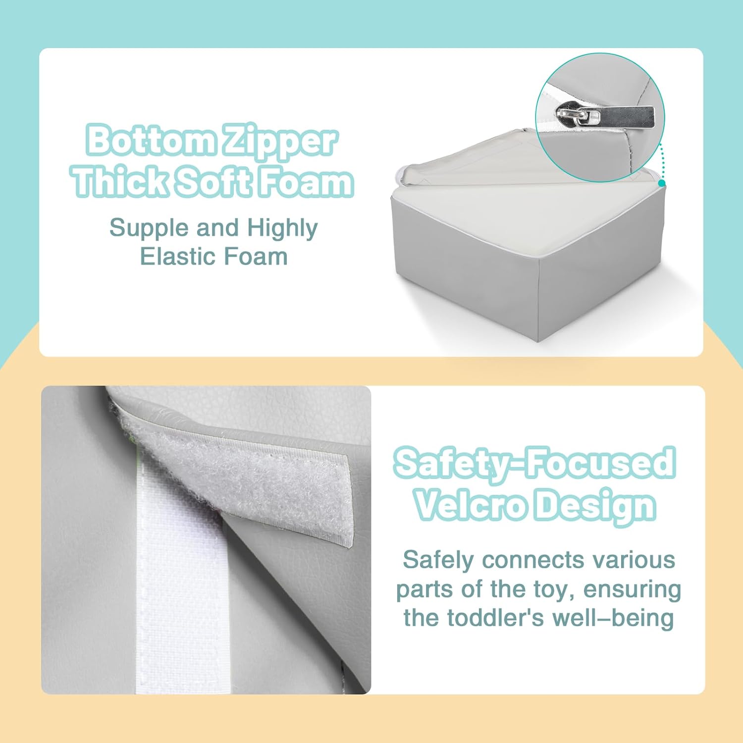 • 6-Piece Set: Baby climbing blocks consists of 2 grey stairs, 2 grey half-moons, 1 grey square and 1 grey slide. This soft play equipment stimulates your child's imagination to create endless combinations of structures, allowing them to enjoy the fun of the toy as they climb up and down, stacking and swapping four different shapes
