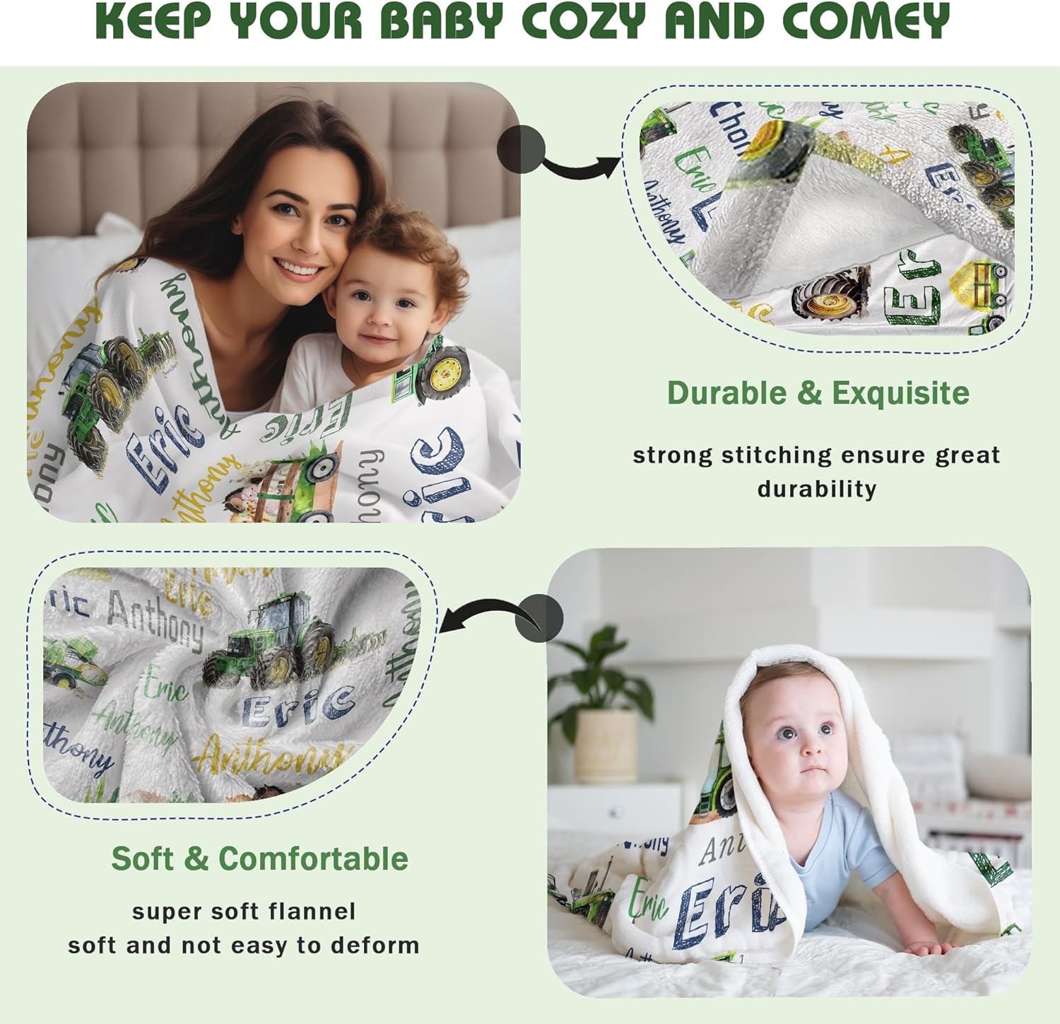 • Personalized Graphics: Blanket with adorable farm tractor pattern design,If your child loves farm tractor this would be the best choice! AP13