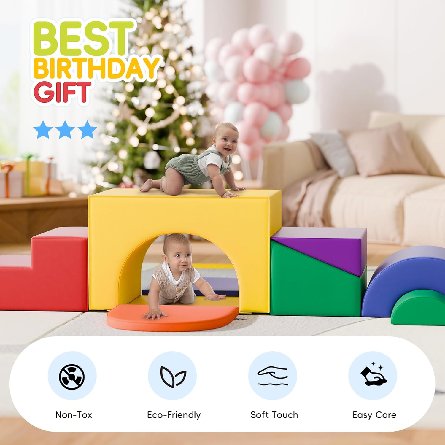 • 5-in-1 Soft Play Set:Bright blocks assemble into formations to climb, crawl and slide through, building motor skills.The tunnel & incline mat add even more fun. Play motivates movement exploration