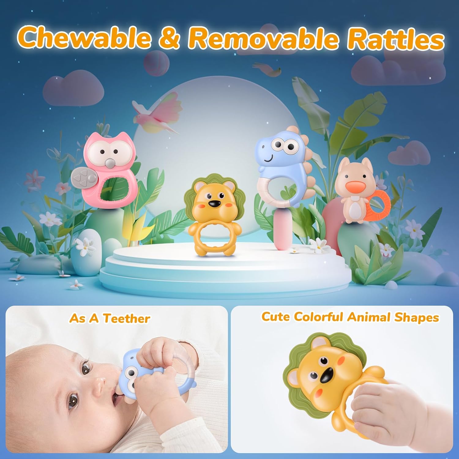 • 【Cute Rattles】Equipped with five colorful rattles, including lions, dinosaurs, owls, foxes, cute balls, etc., they not only dance joyfully under the drive of rotation, but can also be disassembled for easy cleaning, gnawing and biting, and used as baby teethers. This multifunctional baby mobile is beneficial for exercising children's hand eye coordination, soothing emotions, reducing crying, and is a companion for the healthy growth of newborns and infants aged 0-6 months, 6-12 months, or 12-24 months.