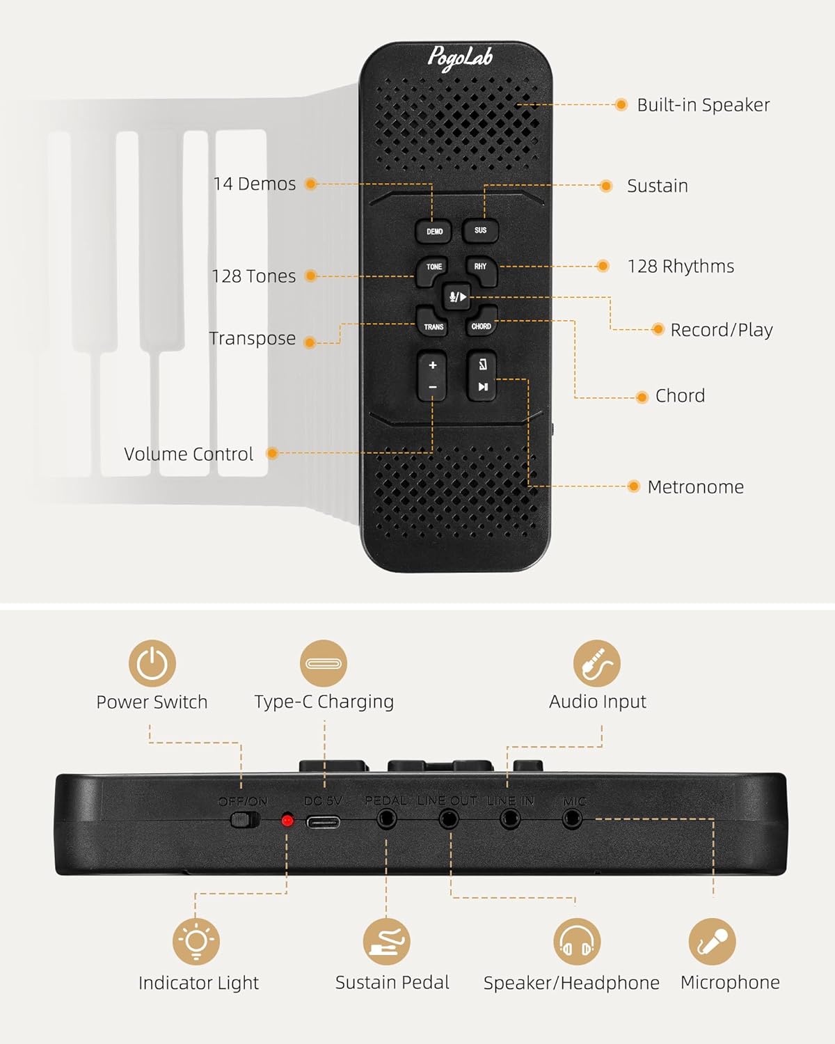 • Multi-function: It has 14 songs, 128 tones and 128 rhythms built in, allowing you to explore various sound effects and musical styles. It also has metronome, volume control, transpose, chord, recording and other functions to meet your various musical needs