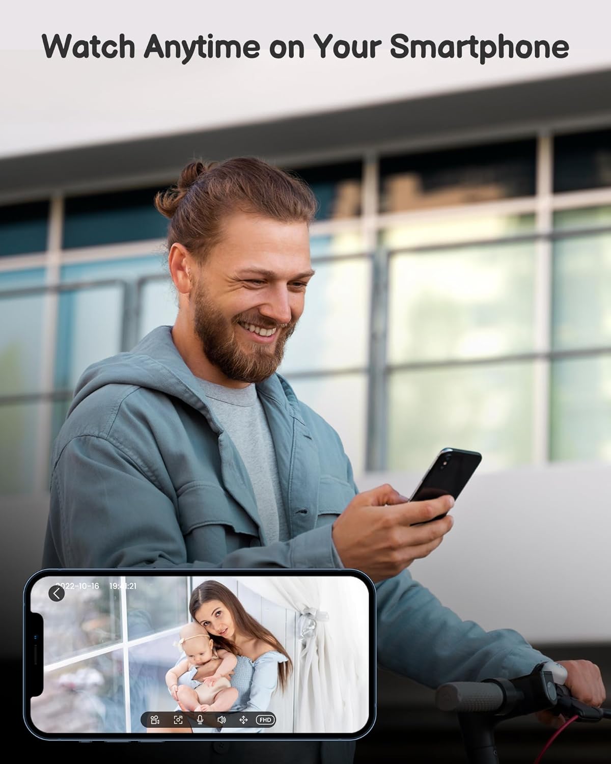 - 【Motion & Sound Detection】The video baby monitor comes with advanced motion and sound sensors. Whenever the baby camera detects your baby moving or crying, it will notify you through both the monitor and your smartphone. Even if you are busy cooking or doing the dishes, you can be there for your baby when they need you. Giving you peace of mind.
