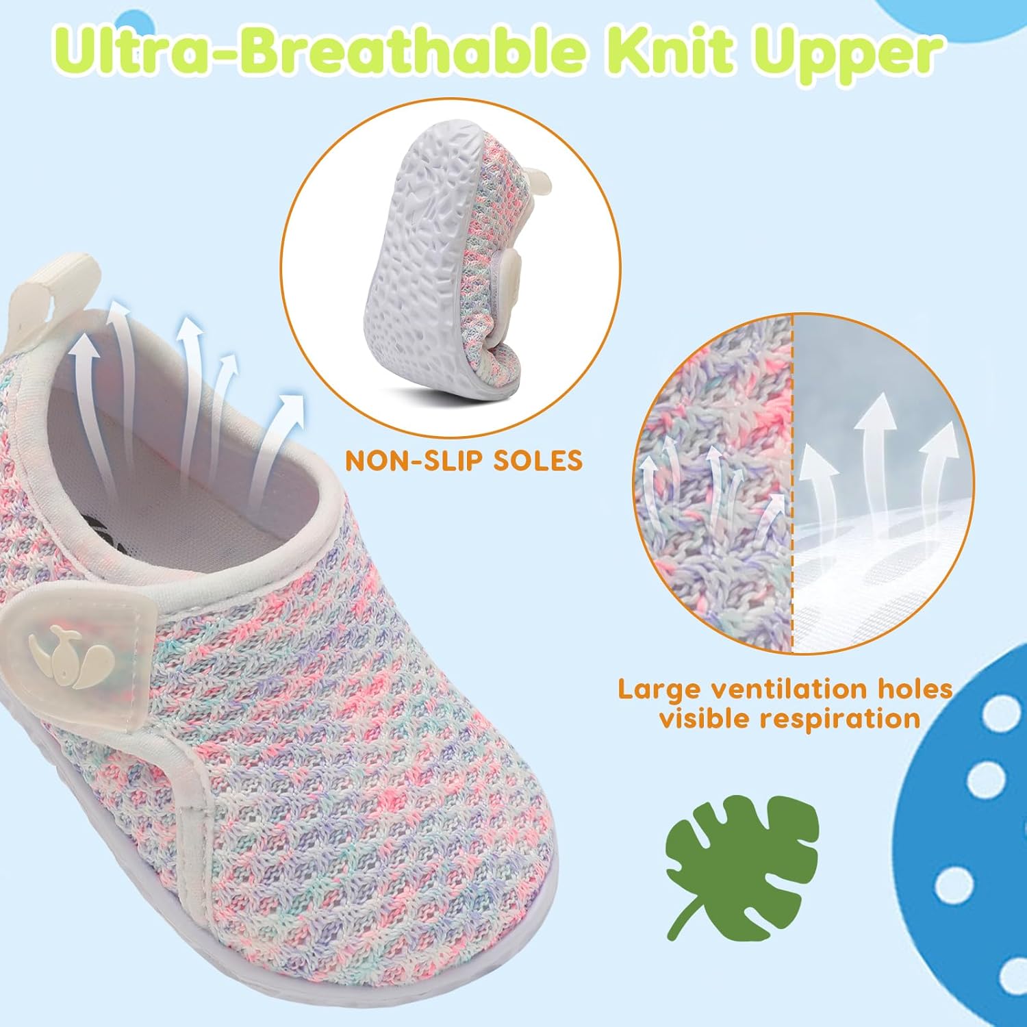 • Upper:Knitted Mesh Upper offers comfort and air permeability,has excellent breathability,moisture wicking function,and keep baby's feet dry and odorless.Super Soft,Breathable and Comfortable fit all the year