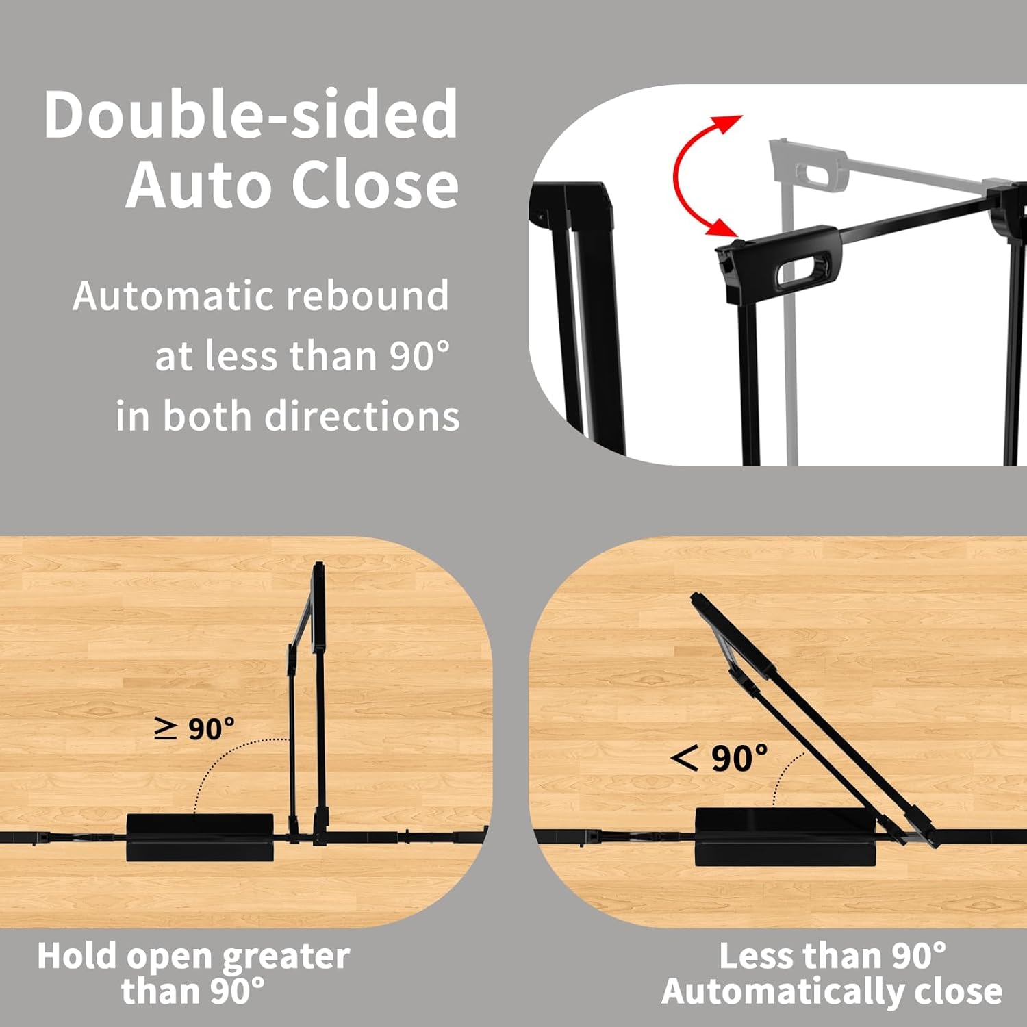 - 180°Two-way Automatic :Our baby gates has a 180°two-way opening design , which allows you to open in both directions for easy access. The clear gate closes automatically when you open at an angle less than 90°and the acrylic pet gate stays open when the opening angle is greater than or equal to 90°. And the gate can be opened or closed with one hand for easy access. Note: We need to adjust the bolts to make the gate gap to the proper size for the clear baby gate to close automatically