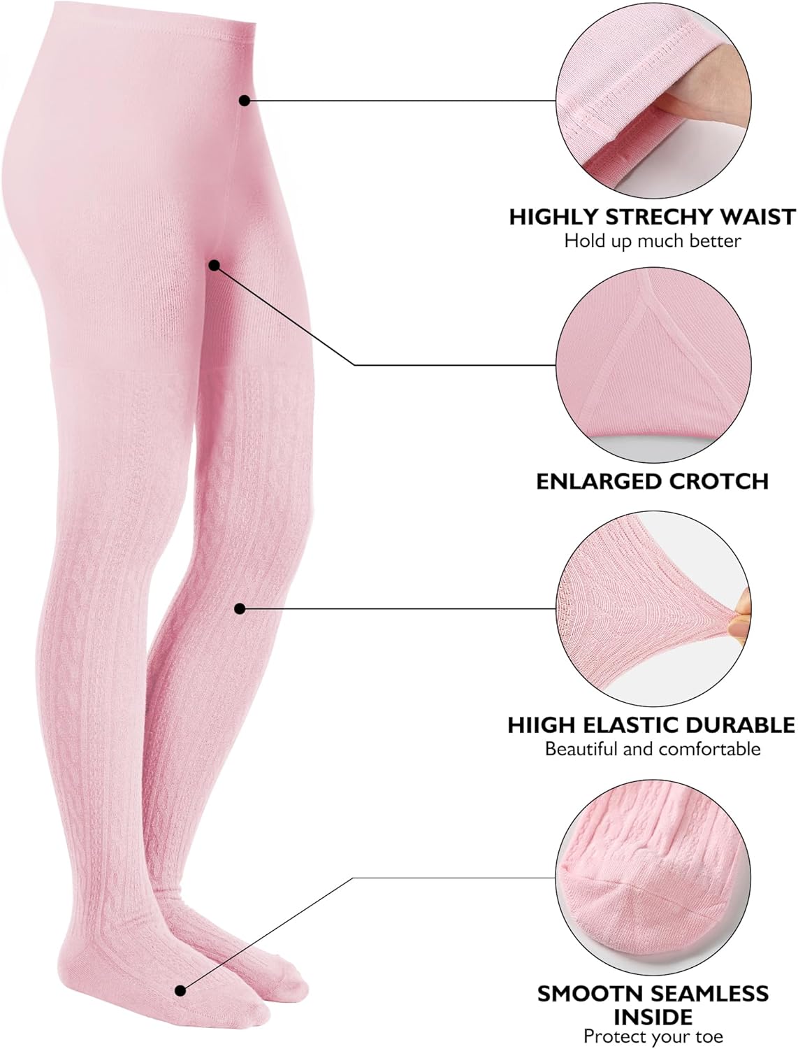 Baby Girls Tights Cable Knit Toddler Leggings Winter Solid Cotton Tights School Stockings 2 Pack 2T-12 Years