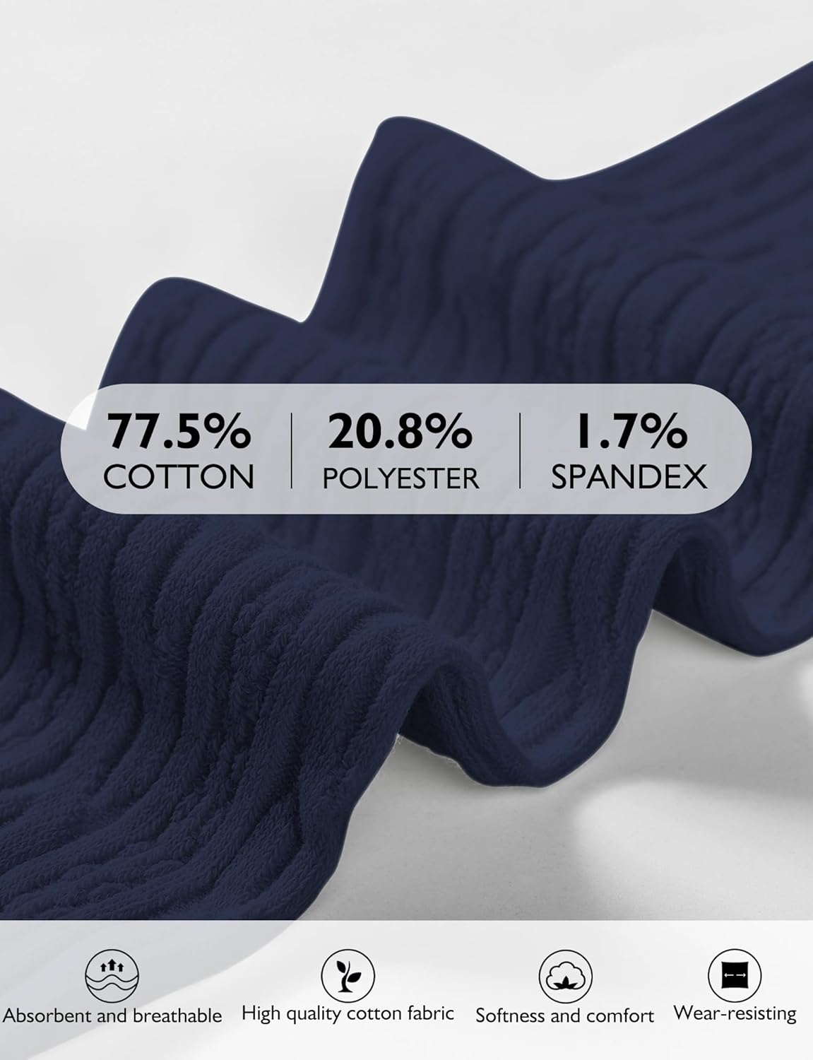 • Fabric type : 77.5% Cotton, 20.8% Polyester, 1.7% Spandex