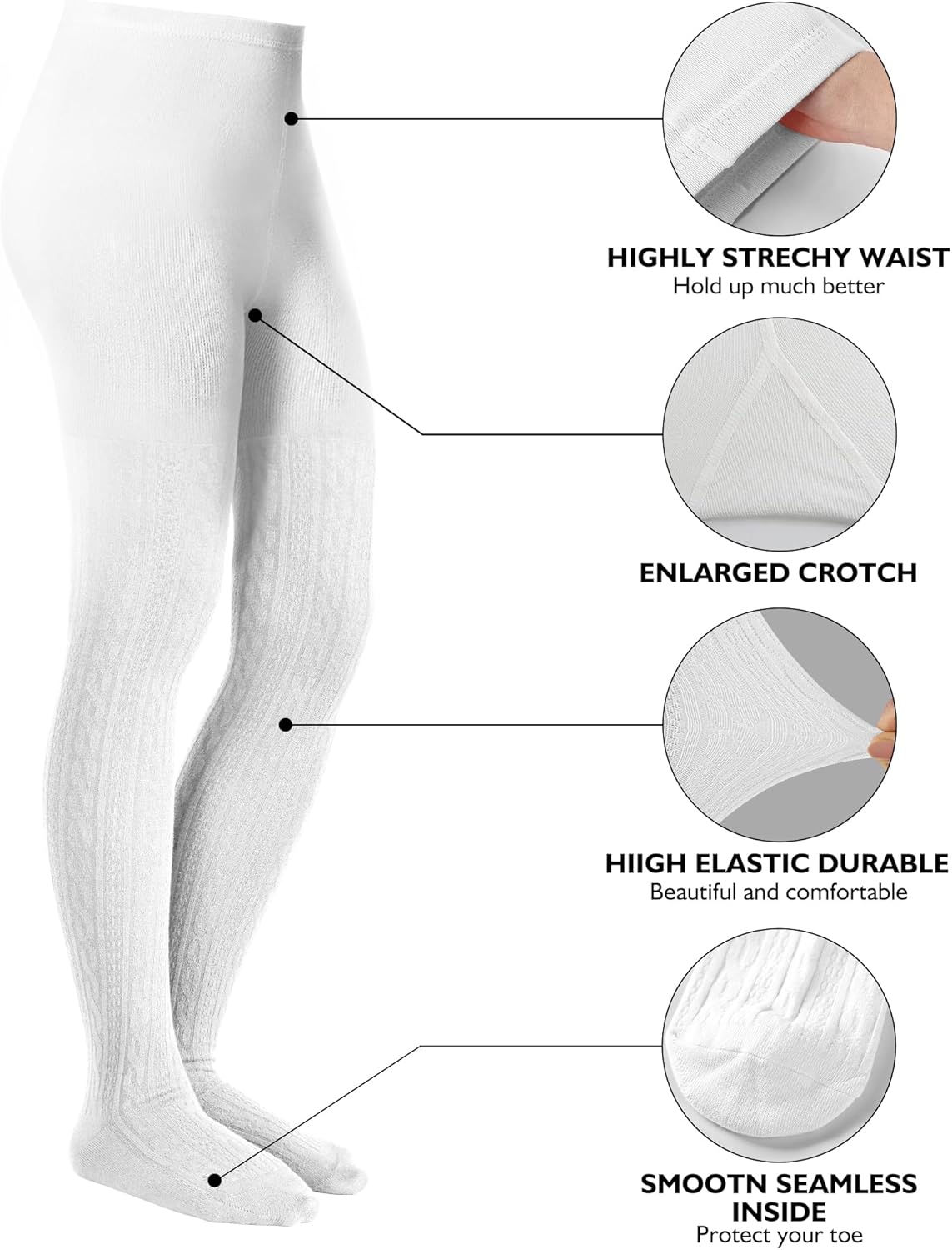 • Thoughtful Design: Cable Knit Tights are crafted from a fabric that balances softness and breathability, while the patterned design adds a touch of charm. The seamless leggings offer extra protection and comfort for your little girl's feet.