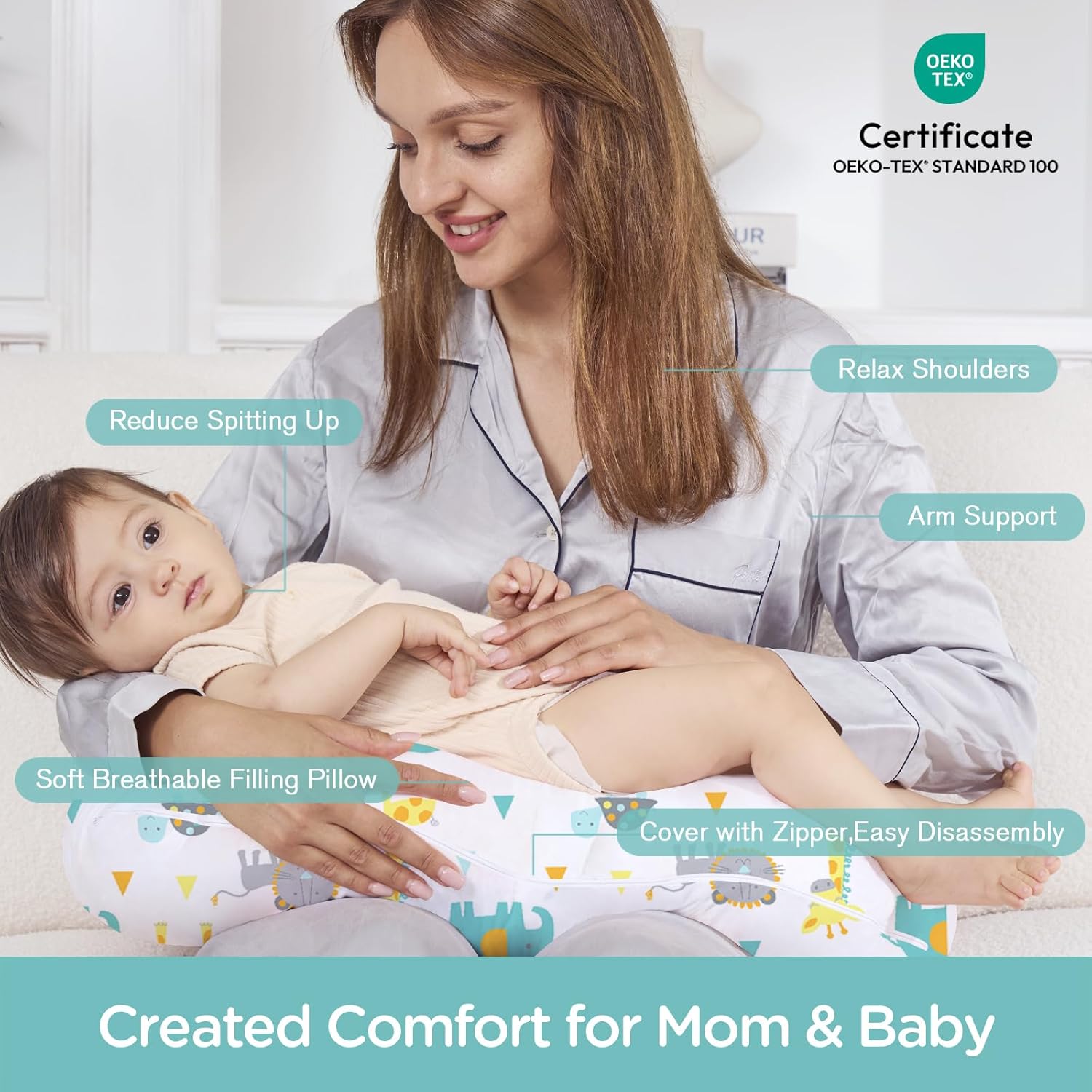 - Premium Quality Pillow Materials: The nursing pillow cover is super soft, breathable and comfortable for any season!Made from 100% microfiber,Tested for harmful substances according to Standard 100 by OEKO-TEX will provide a soft comfy place for child to play