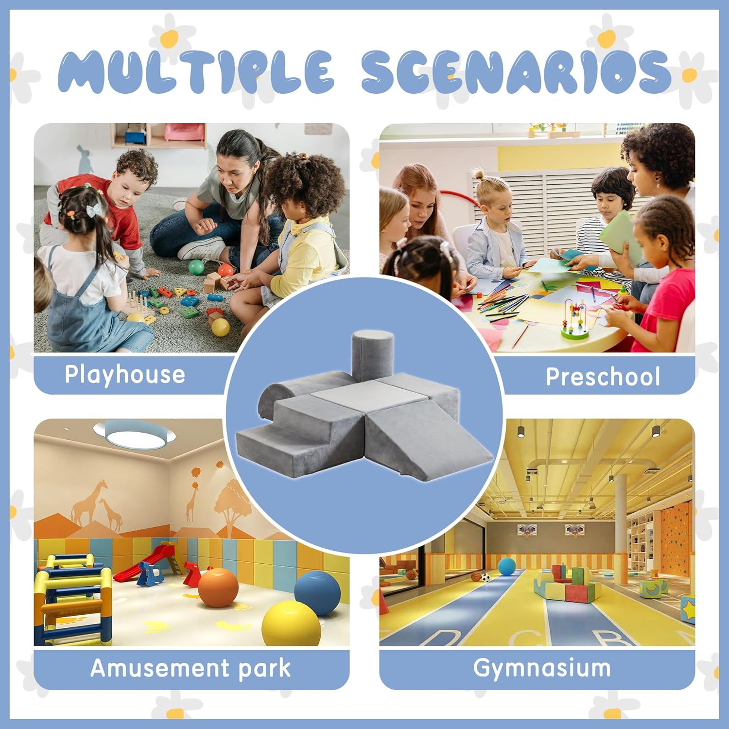jela Foam Blocks 6Pcs Soft Play Equipment Soft Velvet, Toddler Climbing Toys Indoor Soft Play Climbing for Toddlers, Lightweight Climbing Blocks for Babies, Kids, Climb and Crawl Foam Playset