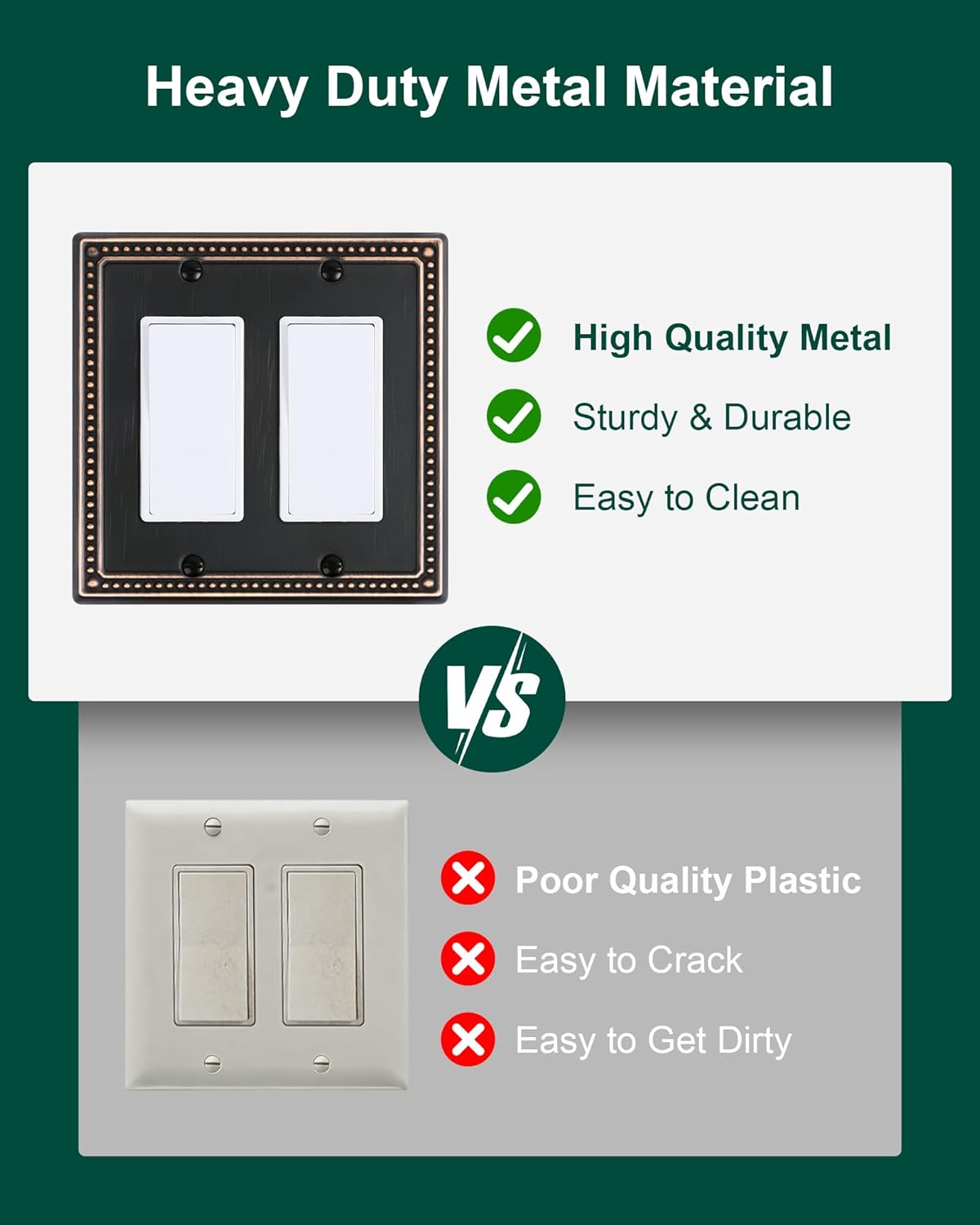 • Timelessly Elegant - The double decorator outlet covers feature an exquisite aged bronze finish with a traditionally styled beaded border. Offering a functional yet elegant enhancement to your home decor. Stylish wallplate effortlessly blends practicality with a refined decorative accent and sophisticated charm.
