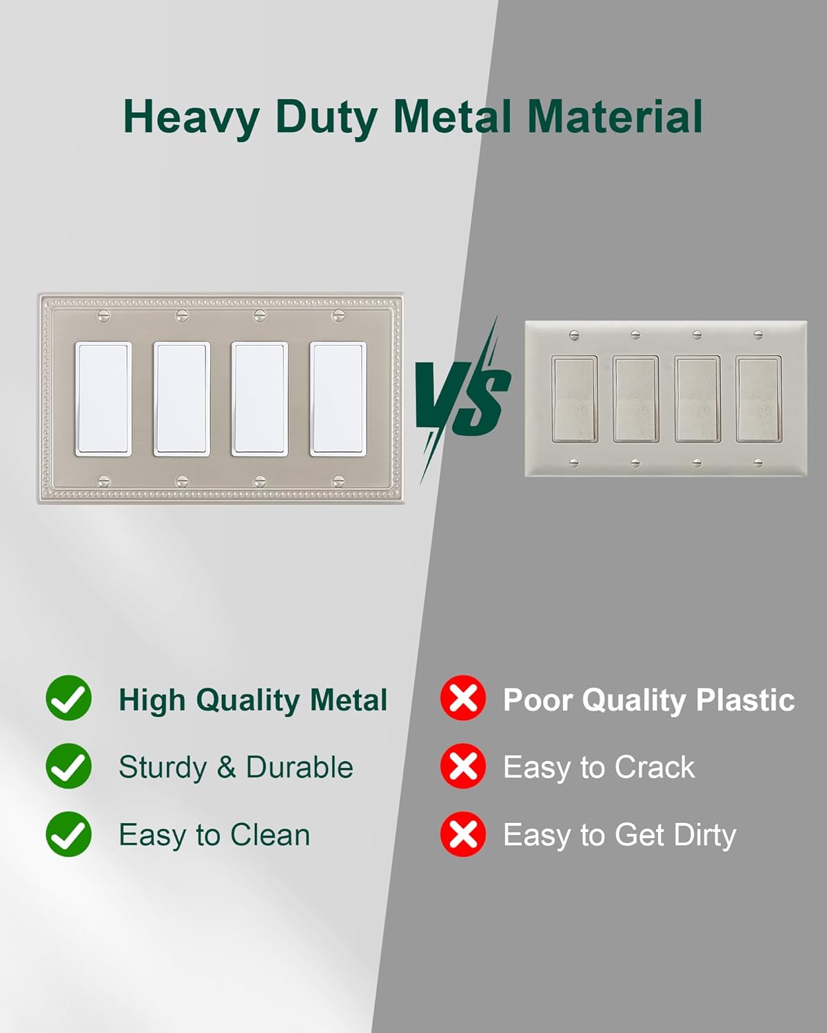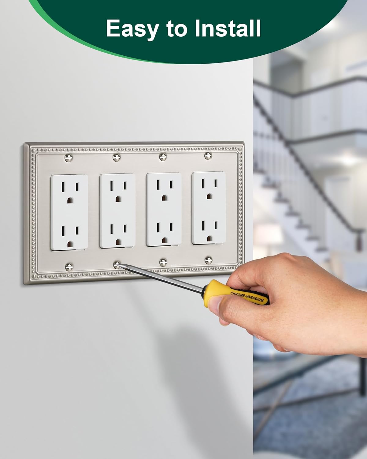 • Durable Metal - Crafted from thick and sturdy metal, this quad decorator outlet cover ensures long-lasting durability and sturdiness. Resistant to tarnishing and corrosion, not easy to break. It will maintain its elegant appearance for years to come.