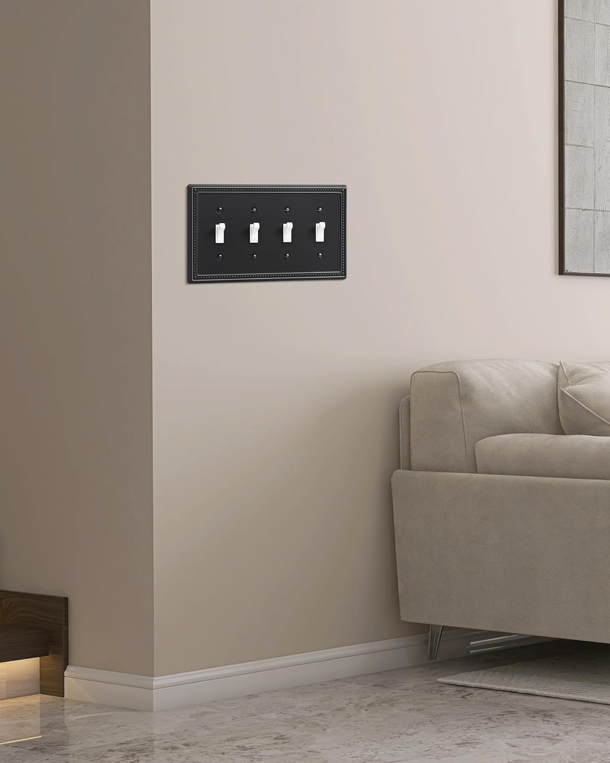 • Timelessly Elegant - The quad light switch plate covers feature an exquisite black finish with a traditionally styled beaded border. Offering a functional yet elegant enhancement to your home decor. Stylish wallplate effortlessly blends practicality with a refined decorative accent and sophisticated charm.