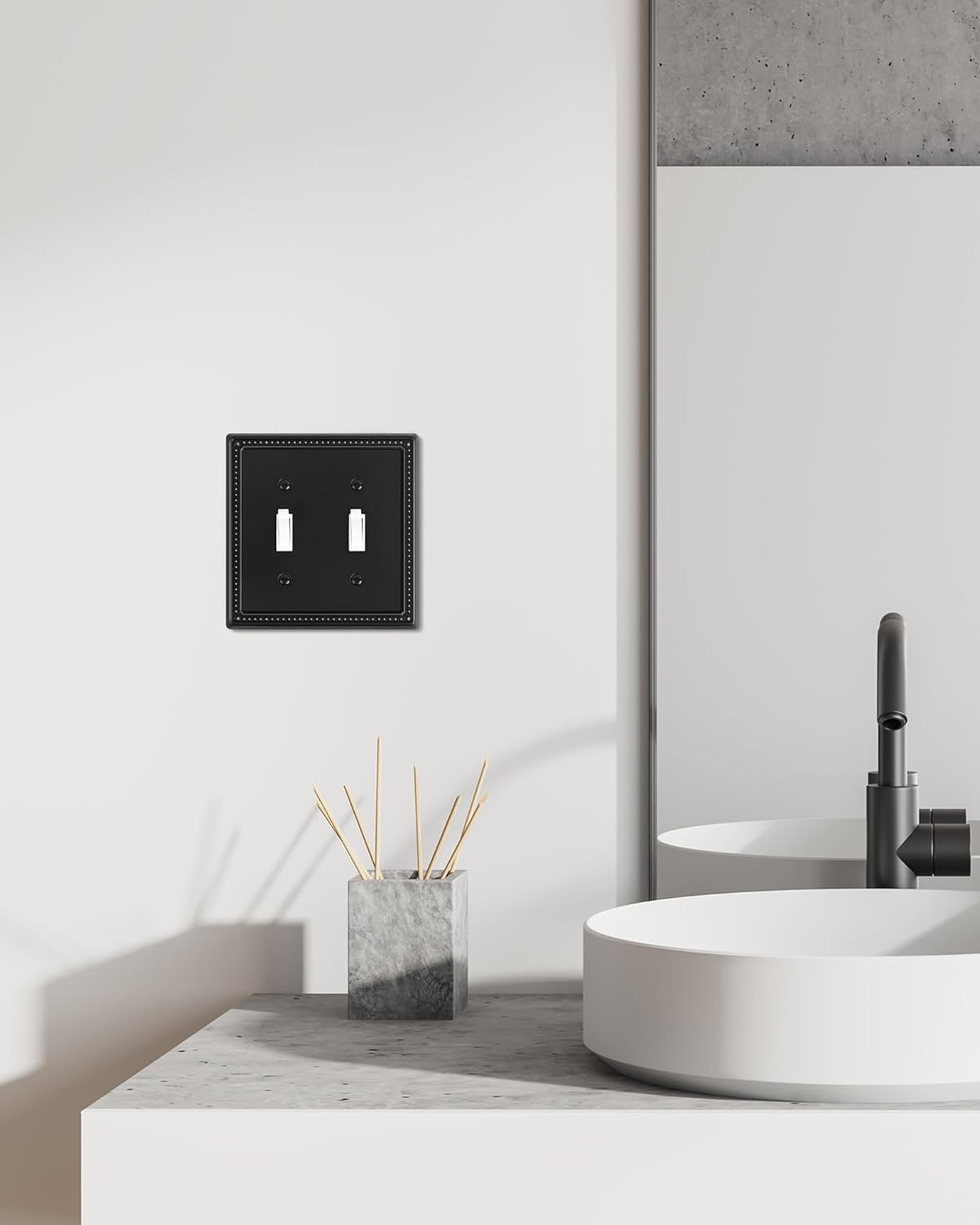 • Timelessly Elegant - The double light switch plate covers feature an exquisite black finish with a traditionally styled beaded border. Offering a functional yet elegant enhancement to your home decor. Stylish wallplate effortlessly blends practicality with a refined decorative accent and sophisticated charm.