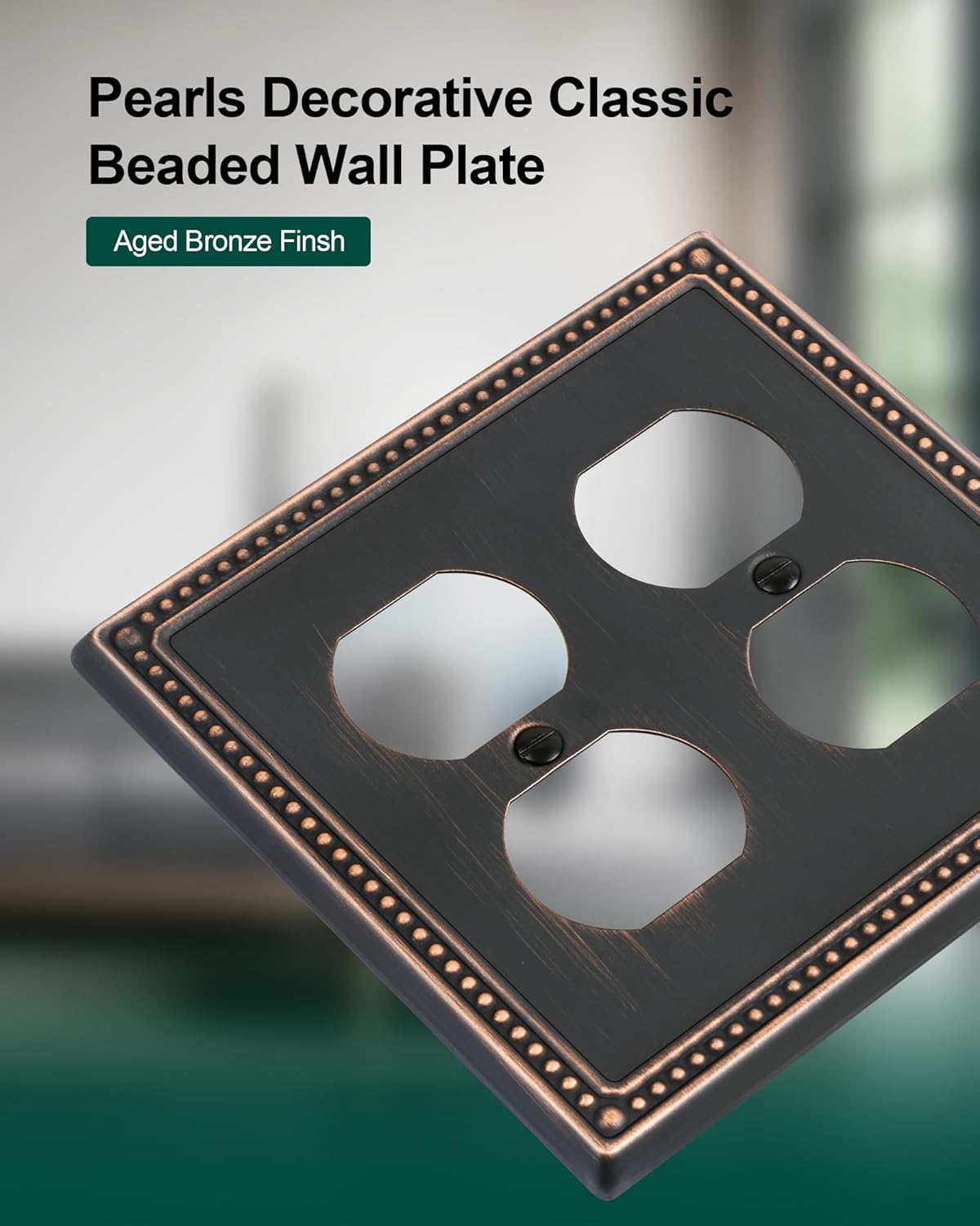 • Timelessly Elegant - The double duplex outlet cover features an exquisite aged bronze finish with a traditionally styled beaded border. Offering a functional yet elegant enhancement to your home decor. Stylish wallplate effortlessly blends practicality with a refined decorative accent and sophisticated charm.