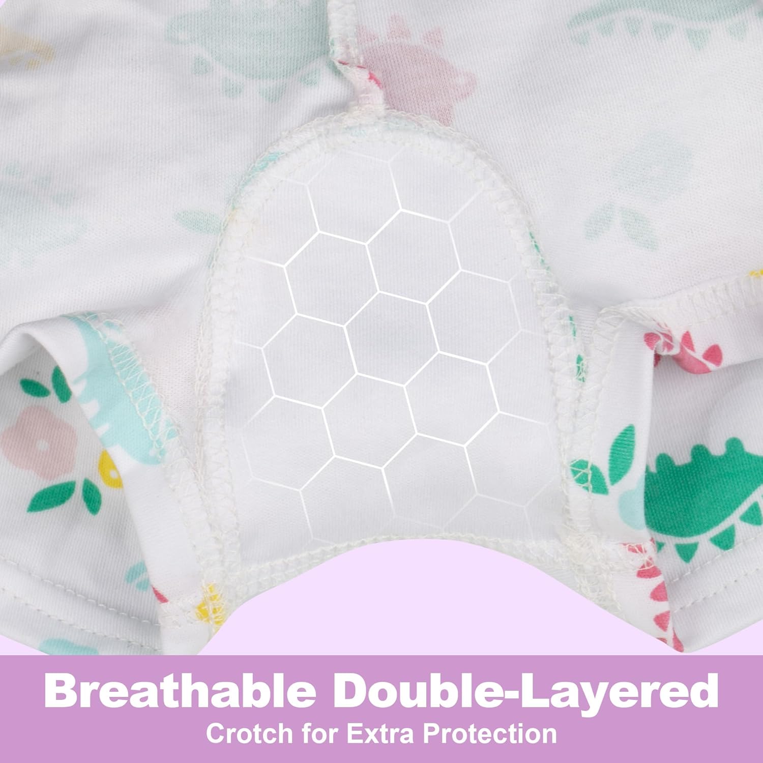 • DOUBLE-LAYERED CROTCH FOR ADDED PROTECTION – Designed with durability in mind, the breathable double-layered crotch adds extra protection and long-lasting comfort. Whether for daytime activities or overnight wear, these toddler panties offer reliable support.