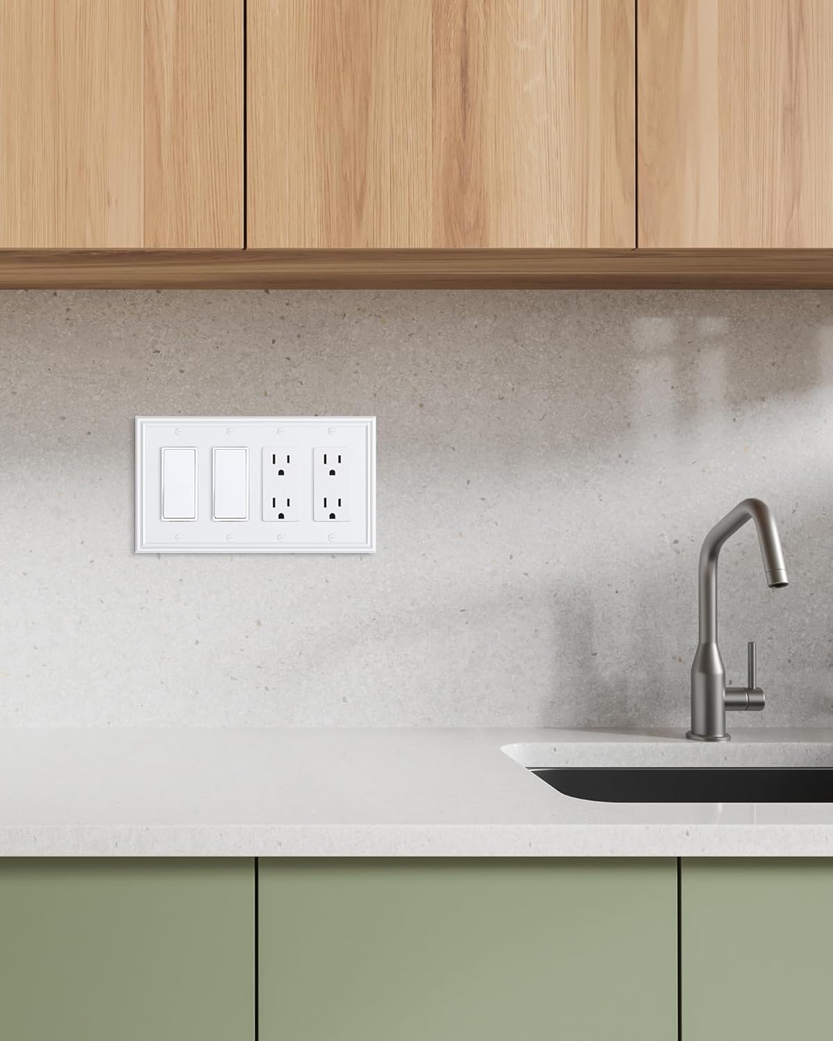• Wide Application - Versatile and easy to match, These pure white wall plates are compatible with Decorator Outlet Receptacle, Roker Switch, Dimmer Switch, GFCI Outlets. Complements any interior style, whether your decor is modern, traditional, or contemporary, this decorative switch plate cover seamlessly blends in and glams up your wall.