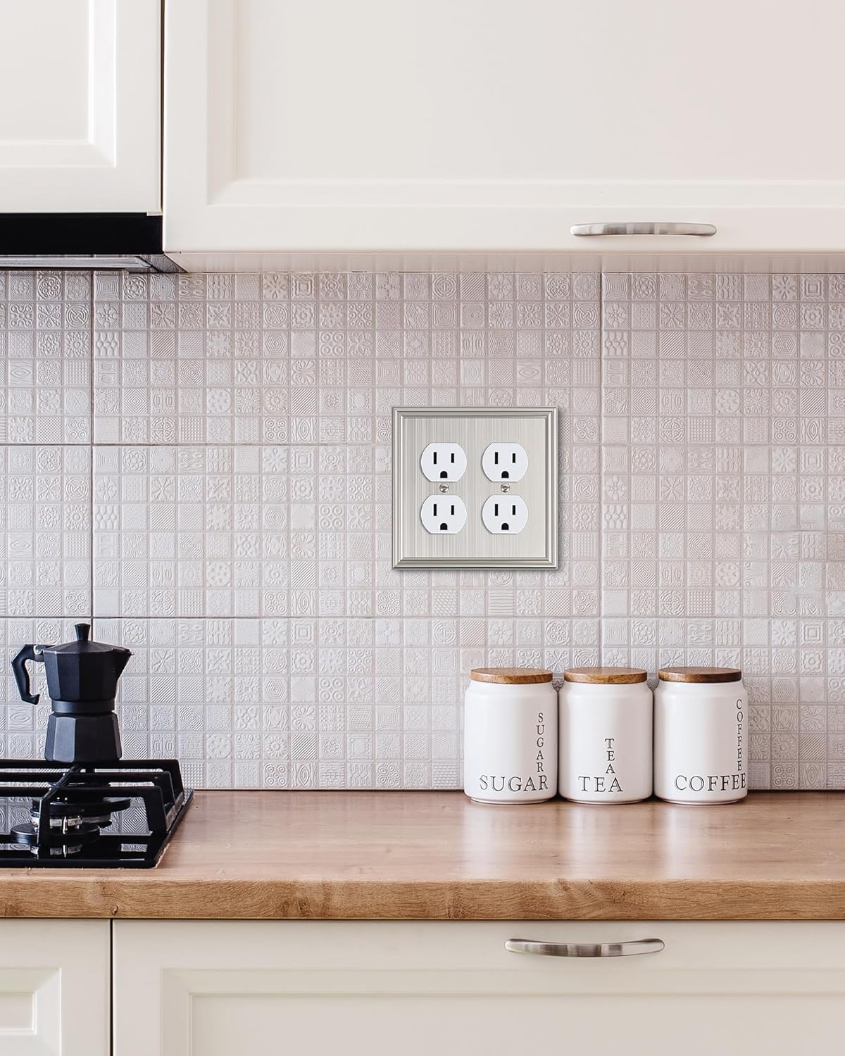 • Wide Application - Versatile and easy to match, These decorative outlet covers are compatible with Duplex Outlet, Double Light Switch. Complements any interior style, whether your decor is modern, traditional, or contemporary, this brushed nickel switch plate cover seamlessly blends in and glams up your wall.