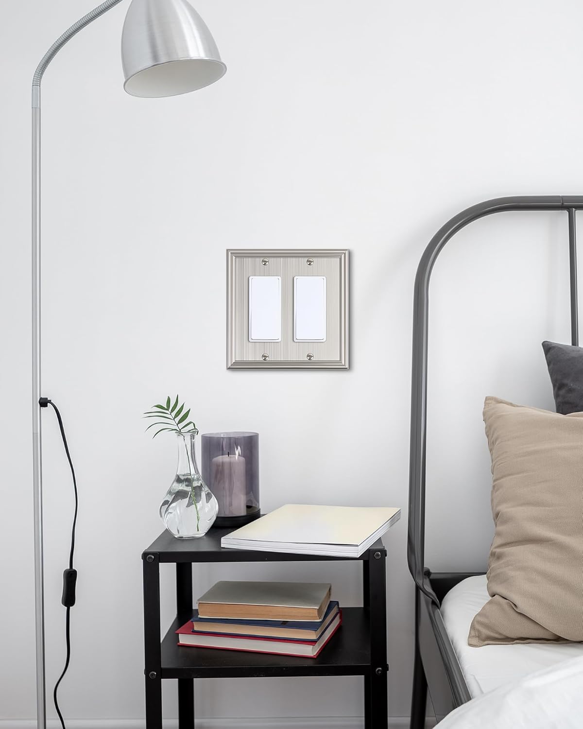 • Wide Application - Versatile and easy to match, These brushed nickel wall plates are compatible with Decorator Outlet Receptacle, Roker Switch, Dimmer Switch, GFCI Outlets. Complements any interior style, whether your decor is modern, traditional, or contemporary, this decorative switch plate cover seamlessly blends in and glams up your wall.