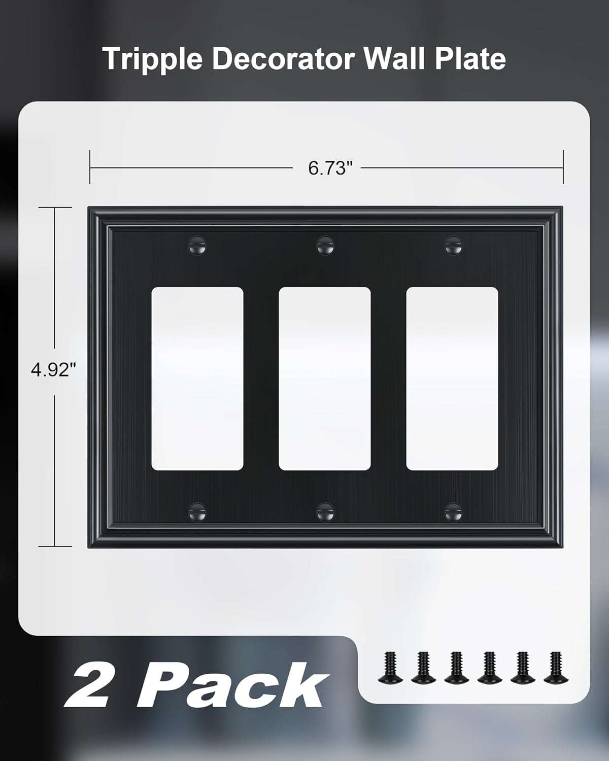 • Specification - Pack of 2 tripple decorator metal wall plates, size at 6.73''W*4.92''H. Easy replacement of any wall plate with the same configuration, making it a convenient choice for remodeling or upgrading your home. Backed by a one-year warranty to ensure your peace of mind and complete satisfaction.