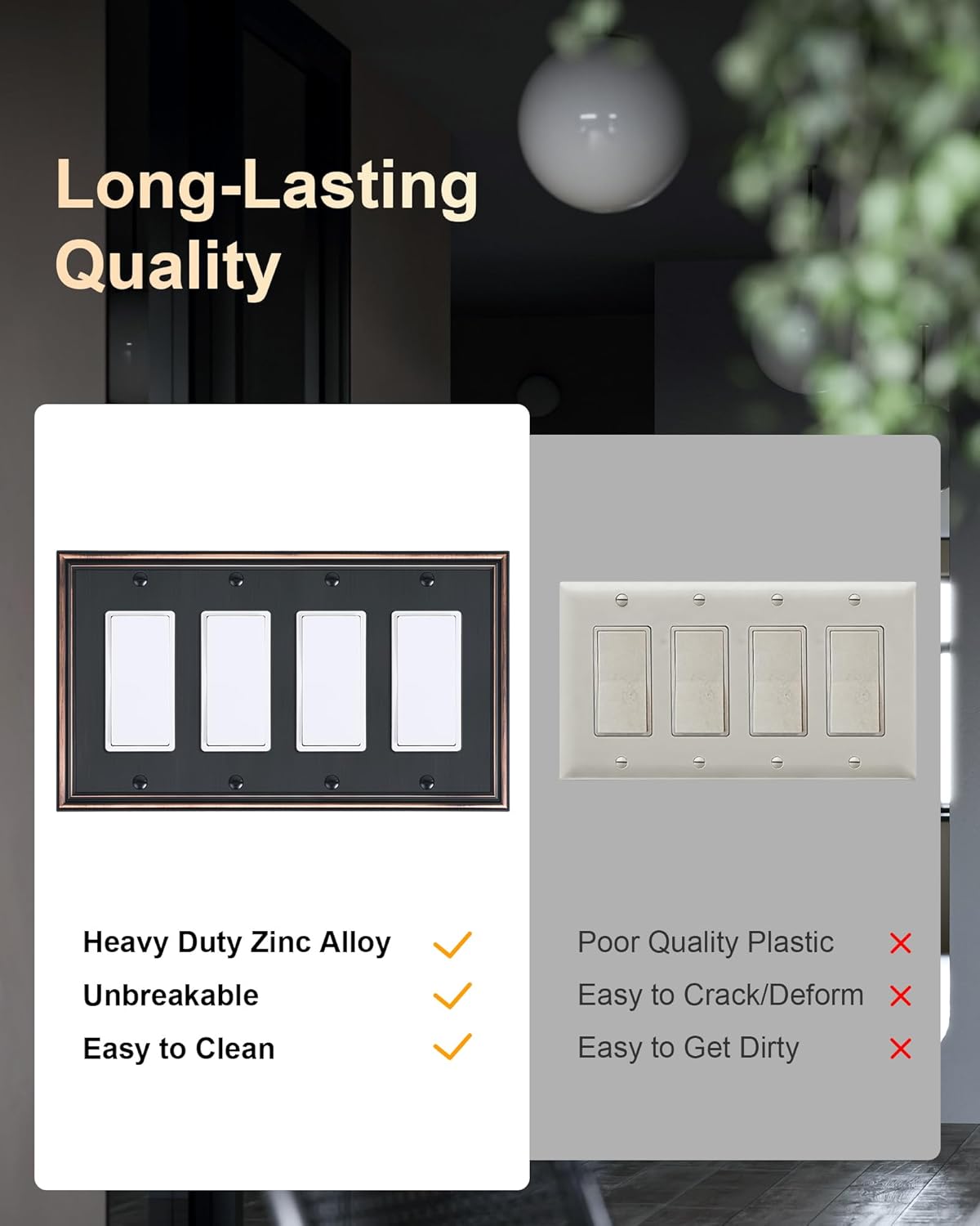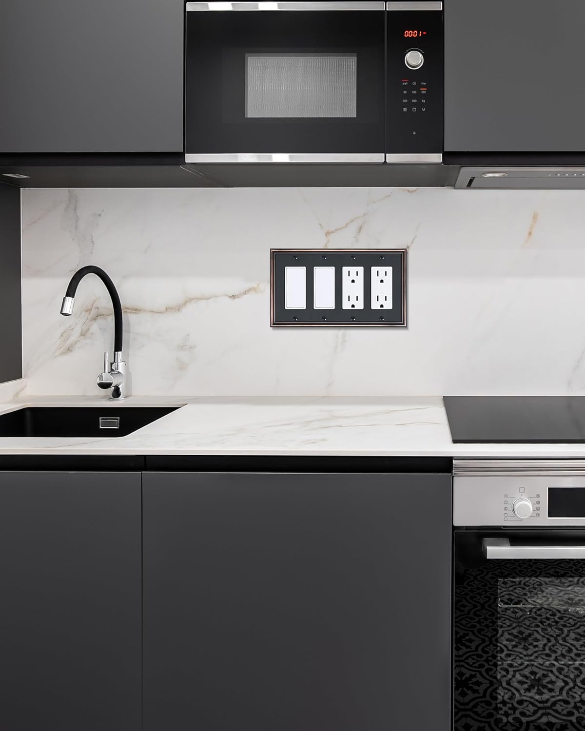 • Stylish yet Simple - Beautifully designed with simple, clean lines and exquisite aged bronze finish, our 4 gang switch plate adds a touch of elegance and sophistication to your decor. The brushed texture further enhances its stylish appeal, effortlessly complements any room, adding an instant touch of elegance and charm.