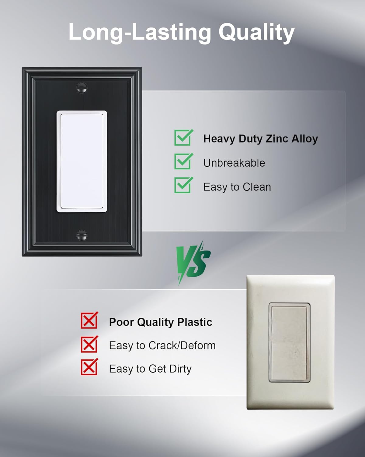 • Durable Solid Zinc Alloy - Constructed from thick and sturdy zinc alloy, the wall plate cover offers exceptional durability and sturdiness, easier to clean and maintain. It is resistant to high impact, tarnishing, and corrosion, unbreakable. Ensuring it remains a stunning addition to your home for years to come.