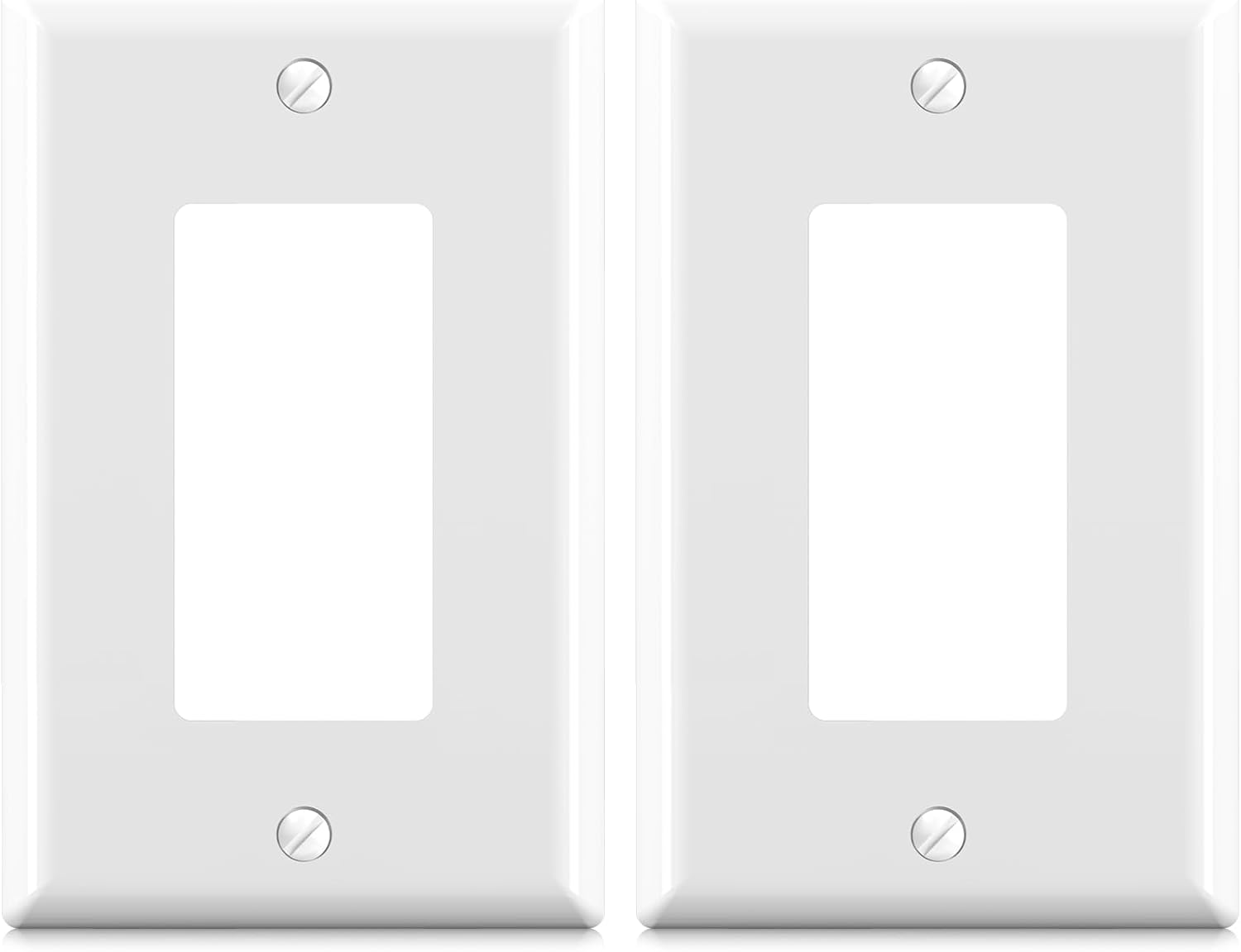 ELEGRP Decorative Receptacle Wall Plate, 1-Gang Mid Size Decorator Covers, Unbreakable Polycarbonate Faceplates for Decorator Device, UL Listed, Screws Included (2 Pack, Glossy White)