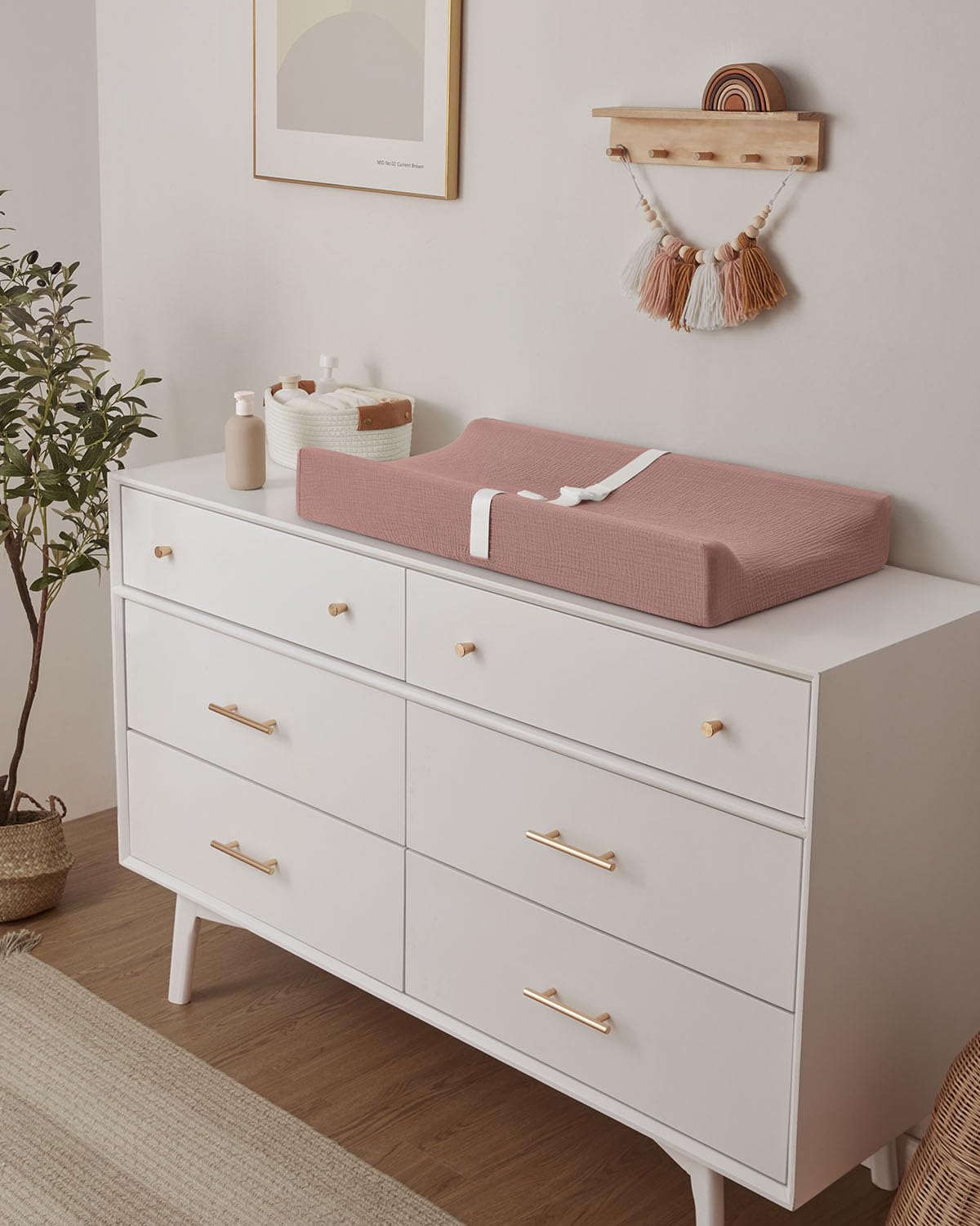 • Design Your Dream Nursery: Our muslin baby changing pad in Dusty Pink brings a soft, romantic charm to your nursery. It's the first choice for modern parents, an unforgettable baby shower gift for baby girls that new parents will love